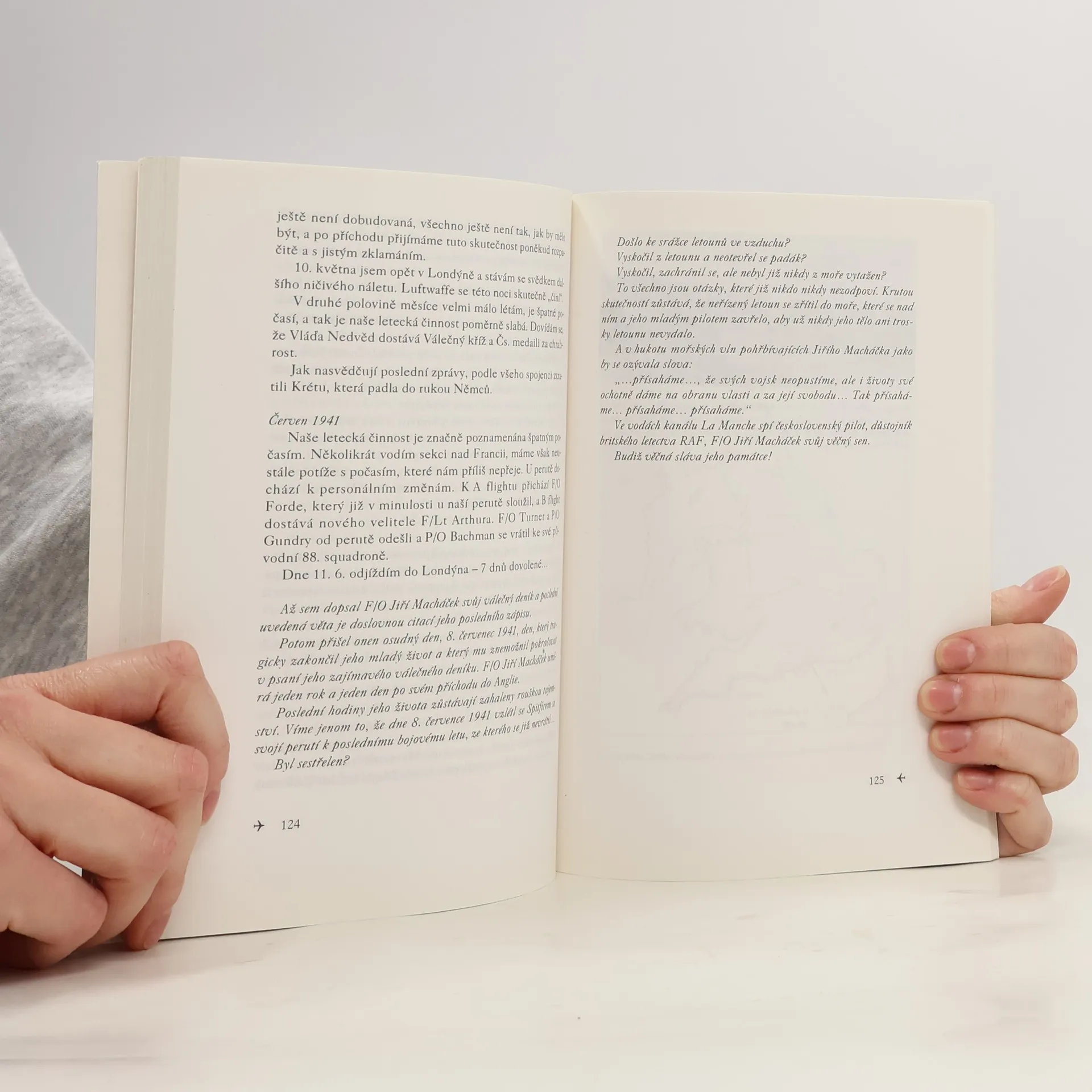 Autentické svědectví o osudech čs. letců za druhé světové války. Zpracováno podle válečného deníku československého stíhacího pilota, důstojníka britského královského letectva, příslušníka 145. stíhací perutě RAF F/O Jiřího Macháčka s použitím fotografií a dokumentů z jeho válečného deníku.