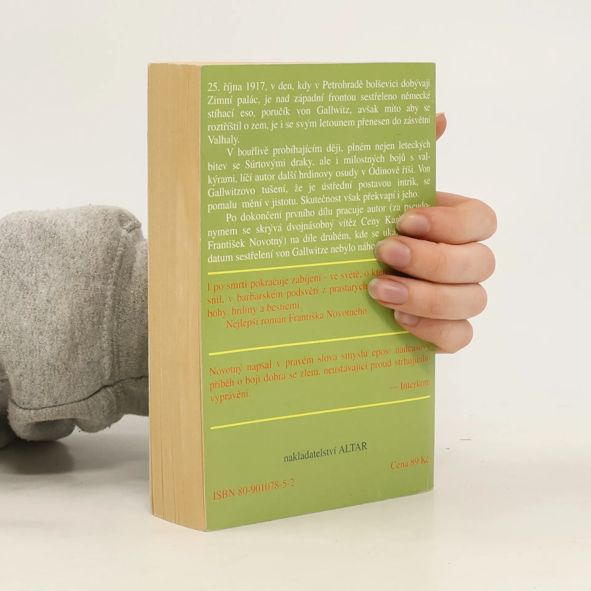 První díl skvělého cyklu Františka Novotného – vydaný ještě pod pseudonymem. 25. října 1917, v den, kdy v Petrohradě bolševici dobývají Zimní palác, je nad západní frontou sestřeleno německé stíhací eso, poručík von Gallwitz, avšak místo aby se roztříštil o zem, je i se svým letounem přenesen do zásvětní Valhaly. V bouřlivě probíhajícím ději, plném nejen leteckých bitev se Sútrovými draky, ale i milostných bojů s valkýrami, líčí autor další hrdinovy osudy v Ódinově říši. Von Gallwitzovo tušení, že je ústřední postavou intrik, se pomalu mění v jistotu. Skutečnost však překvapí i jeho. -- zdroj: www.legie.info --
