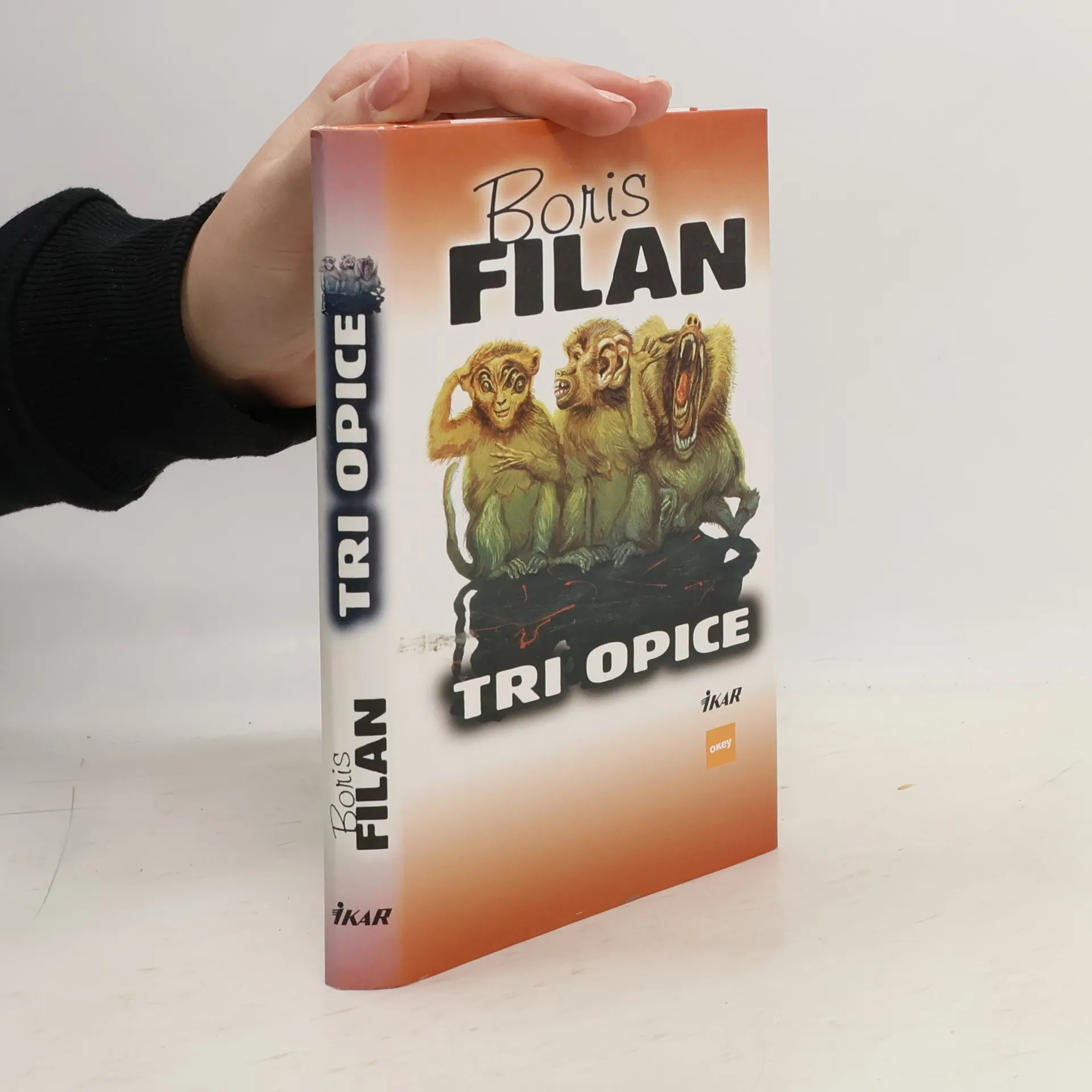 Boris Filan má vraj tri opice, ktoré tvrdia, že všetko vidia, všetko počujú a všetko prezradia. Celý rok úspešne vysielal na pravé poludnie v Rádiu Okey svoje fejtóny, postrehy a krátke poviedky. Filan znova vidí svet prekvapujúco, vzrušujúco a provokujúco. Uvažuje o tom, prečo sa niektoré mušle otáčajú do protismeru, kto riadi cesty hmyzu a prečo nosia niektorí muži hrubé zlaté reťaze. S obrovskou chuťou rozpráva o filmovom páse s vystrihanými erotickými scénami, o najlepšom curry na svete aj o hodinkách s vodotryskom. S Filanom a jeho Tromi opicami je opäť raz múdro, láskavo a zábavne. Ilustrácie: Igor Piačka Z obsahu: Nenávidím Milujem Maruška Zlatá reťaz Prekvapenie Pán času Hodinky, budíky, chronometre Emeritný ...