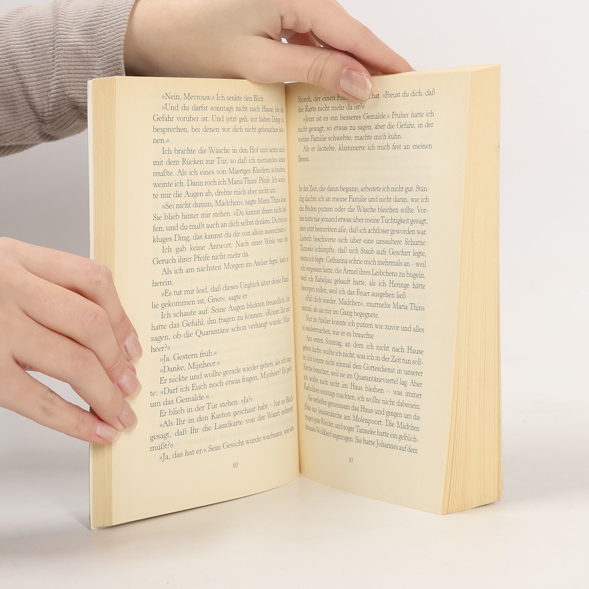 Delft 1664. Als der Vater bei einem Arbeitsunfall sein Augenlicht verliert, wird die junge Griet, um die Familie zu unterstützen, als Dienstmagd in den Haushalt des angesehenen Malers Johannes Vermeer gegeben. Die Schikanen von Vermeers eifersüchtiger Gattin ließen sich kaum ertragen, wären da nicht die faszinierenden Bilder des Meisters, die Griet auf magische Weise in ihren Bann ziehen. Immer häufiger ruht der Blick des Künstlers auf ihr; schließlich beginnt Vermeer, sie heimlich zu malen. Doch als er Griet bittet, einen Perlenohrring anzulegen, beschwört er damit eine Katastrophe herauf, die nicht nur für Griet ungeahnte Folgen hat ...