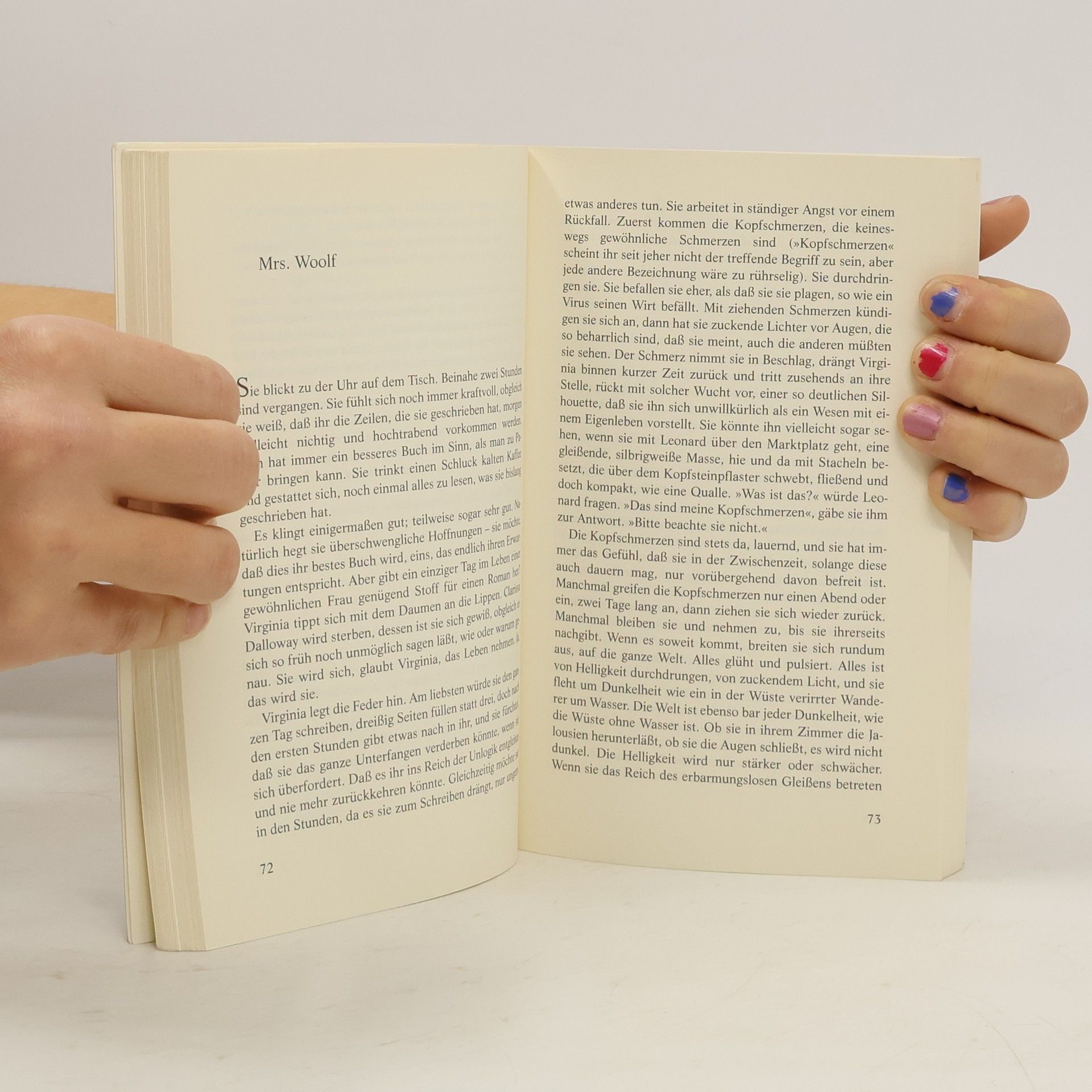 Clarissa Vaughan spaziert an einem strahlenden Junimorgen durch New York, um Blumen für die Party ihres aidskranken Freundes Richard zu besorgen, der einen bedeutenden Literaturpreis erhalten hat. Sie kennen sich seit Jahrzehnten und waren kurz ein Paar; Richard nennt sie Mrs. Dalloway, da sie ihn an die Heldin aus Woolfs Roman erinnert. Laura Brown, verheiratet mit einem Kriegsveteranen, fühlt sich im Vorort von Los Angeles gefangen. An einem Tag im Jahr 1949 flieht sie vor den Pflichten, mietet ein Hotelzimmer und liest fasziniert Mrs. Dalloway. Virginia Woolf kämpft 1923 um den Anfang ihres neuen Romans, der später Mrs. Dalloway heißen wird. Sie hat Kopfschmerzen, hört Stimmen und vermisst die Großstadt, obwohl ihr der Rückzug aufs Land gut tut. Fast steigt sie in den Zug nach London, doch sie bleibt und schreibt den ersten Satz: „Mrs. Dalloway sagte, sie wolle die Blumen selber kaufen.“ Michael Cunningham schildert in seinem bewegenden Roman einen Tag im Leben dieser drei Frauen, inspiriert von Woolfs Werk. Er schafft eine eigene Welt, die Freundschaft, Liebe, Scheitern und Lebensüberdruss thematisiert und eine Gemeinschaft jenseits von Leben und Tod in der Literatur erforscht.