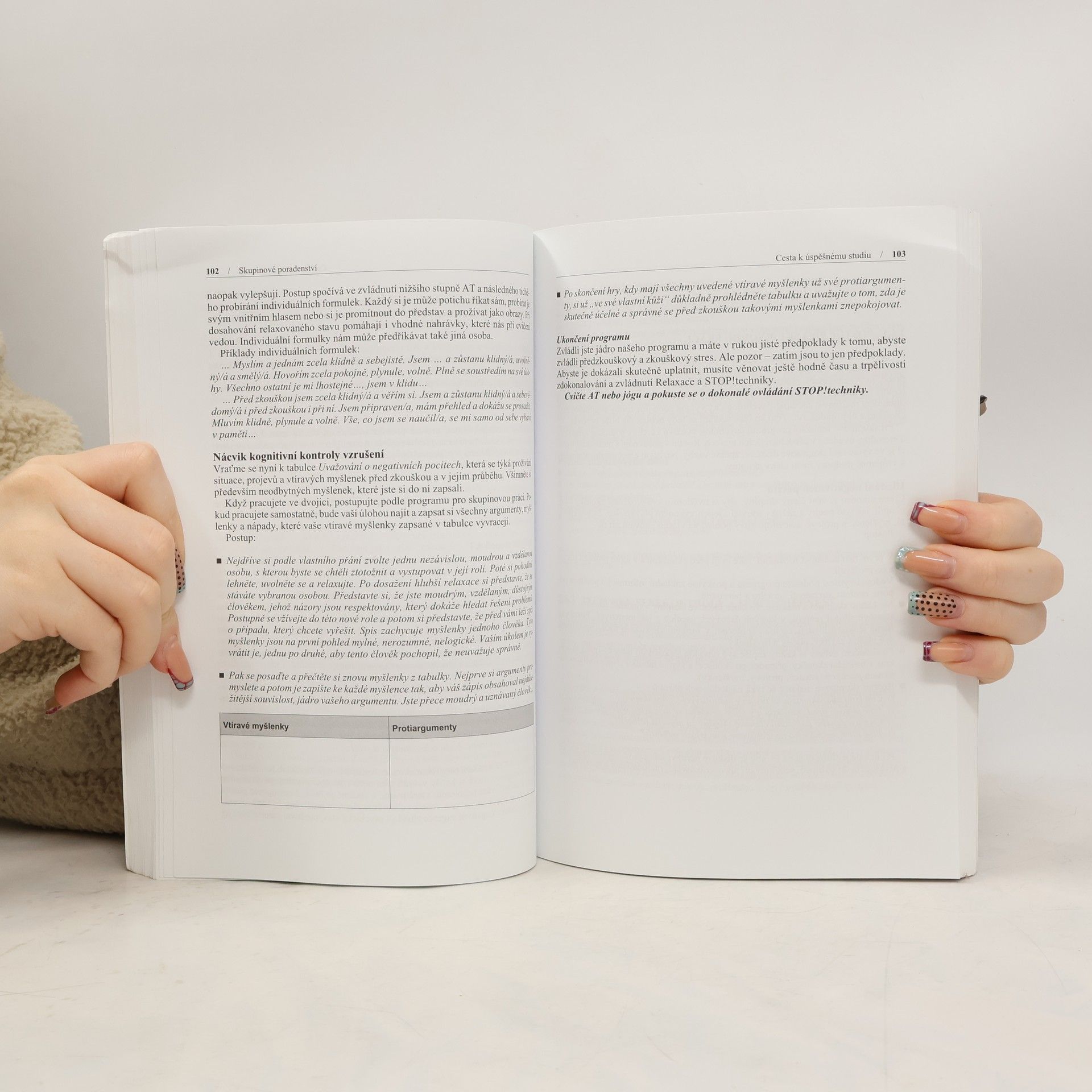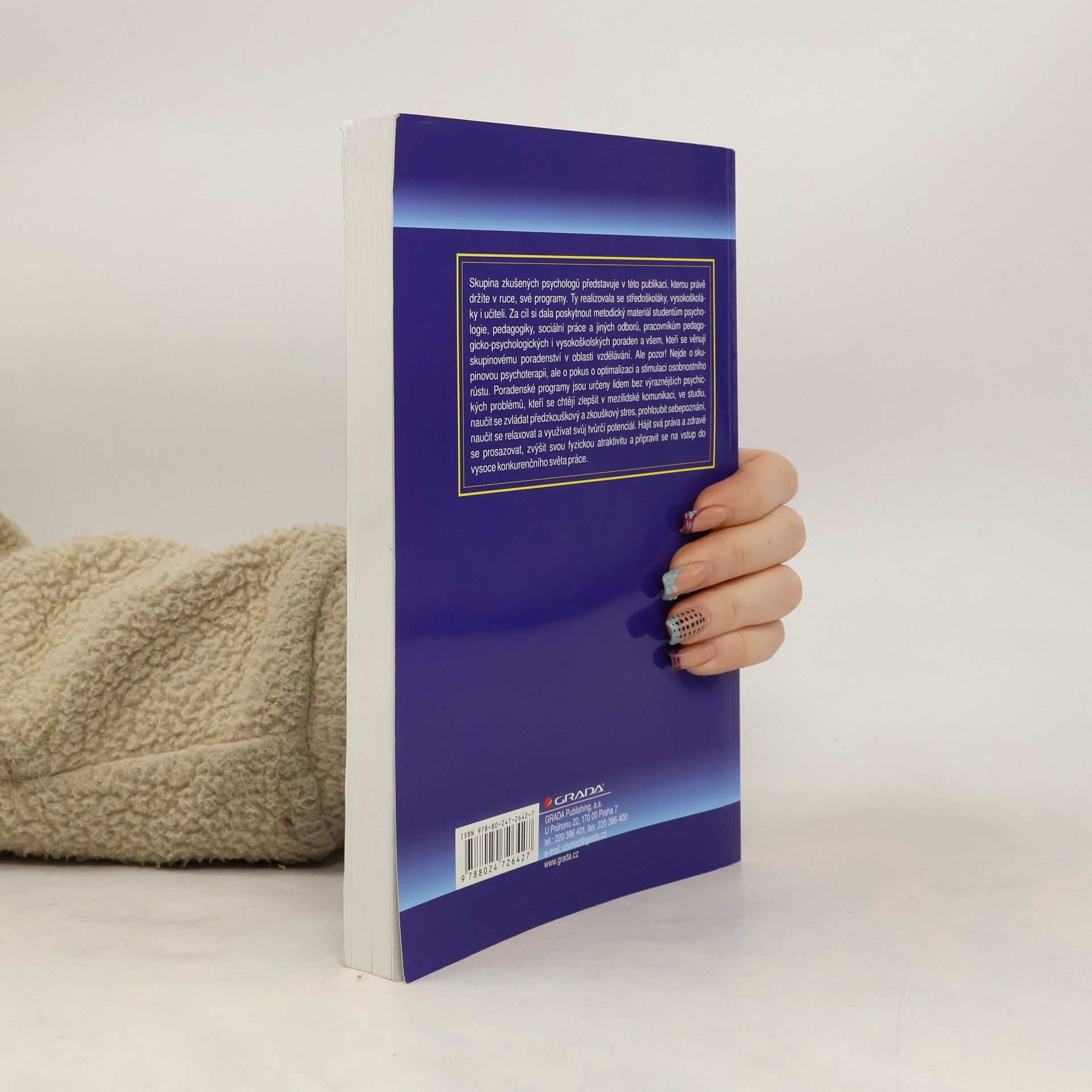Skupina zkušených psychologů představuje v této publikaci, kterou právě držíte v ruce, své programy. Ty realizovala se středoškoláky, vysokoškoláky i učiteli. Za cíl si dala poskytnout metodický materiál studentům psychologie, pedagogiky, sociální práce a jiných odborů, pracovníkům pedagogicko-psychologických i vysokoškolských poraden a všem, kteří se věnují skupinovému poradenství v oblasti vzdělávání. Ale pozor! Nejde o skupinovou psychoterapii, ale o pokus o optimalizaci a stimulaci osobnostního růstu. Poradenské programy jsou určeny lidem bez výraznějších psychických problémů, kteří se chtějí zlepšit v mezilidské komunikaci, ve studiu, naučit se zvládat předzkouškový a zkouškový stres, prohloubit sebepoznání, naučit se relaxovat a využívat svůj tvůrčí potenciál. Hájit svá práva a zdravě se prosazovat, zvýšit svou fyzickou atraktivitu a připravit se na vstup do vysoce konkurenčního světa práce.