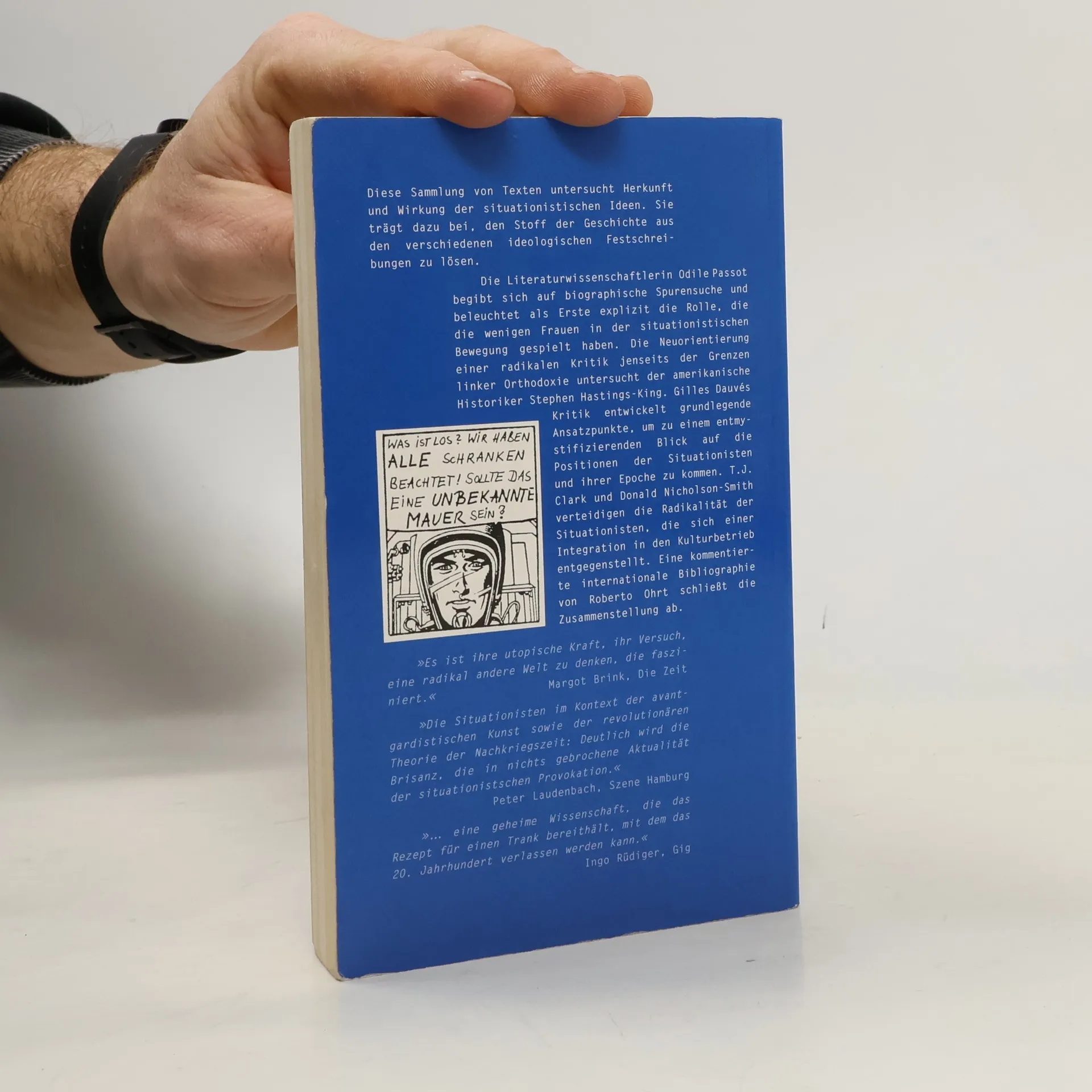Sie waren die Abenteurer des sozialen Raums und hatten innovativen und maßgeblichen Anteil an der Neubestimmung von Kunst und Politik in der Nachkriegszeit. Nach dem Kollaps der marxistischen Orthodoxie erhielt das oppositionelle Denken durch die Situationisten neue, erfrischende Impulse. Die berühmte situationistische Unverschämtheit kulminierte schließlich in den sozialen Unruhen von 1968. Diese Sammlung von Texten untersucht Herkunft und Wirkung der situationistischen Ideen. Die Ablösung von den Kommunistischen Parteien, die Trennung von den Surrealisten, die Auseinandersetzung mit Castoriadis, Lukacs und Lefèbvre sowie der französischen Gruppe 'Socialisme ou Barbarie' untersucht der amerikanische Historiker STEPHEN HASTINGS-KING. Die Literaturwissenschaftlerin ODILE PASSOT begibt sich auf biographische Spurensuche und beleuchtet als erste explizit die Rolle, die die wenigen Frauen der Bewegung gespielt haben. JEAN BARROTS Kritik der Situationisten entwickelt grundlegende Ansatzpunkte, um zu einem entmystifizierenden Blick auf die Epoche zu kommen. T. J. CLARK und NICHOLSON-SMITH verteidigen die Radikalität der Situationisten, die sich einer Integration in den Kulturbetrieb entgegenstellt. Eine internationale kommentierte Bibliographie schließt die Zusammenstellung ab.
