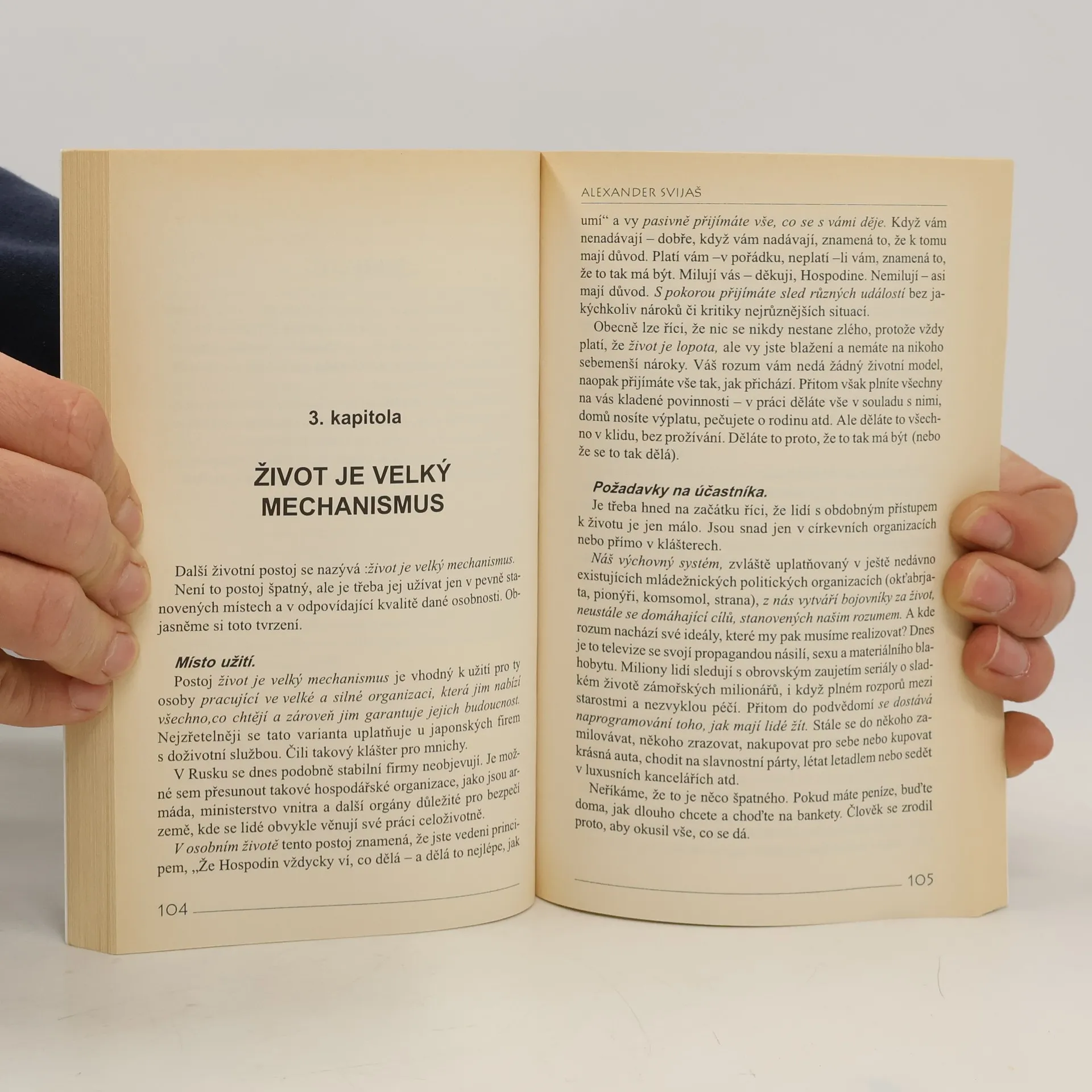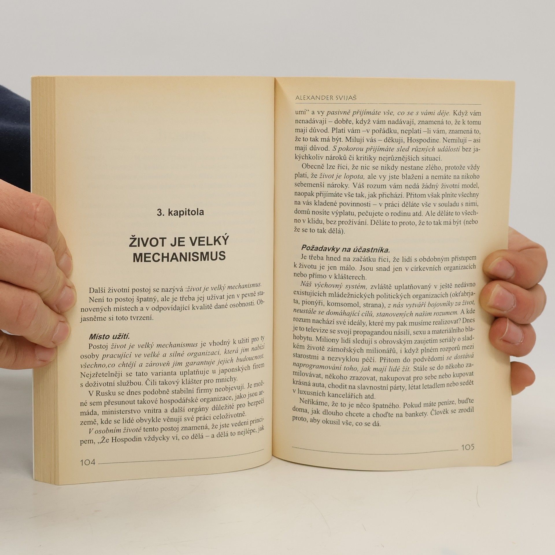 Očištění od problémů, volba životního postoje. Nejde vám to snad v životě tak, jak byste chtěli? Možná je na čase podívat se na něj tak, jak to dělá tato kniha: jako na výsledek vašeho myšlení a jednání, kterým se sami stavíte do určité pozice. Je váš život vzrušující, ale rozhodně ne riskantní hrou? Nebo cirkusovou arénou, ve které bavíte publikum svým vystoupením? Či snad obrovským mechanismem, ve kterém vy jste pouze malinkatým ozubeným kolečkem? Možná život berete spíš jako školu, v níž jsou vám udělovány různé lekce. Jak je to vlastně s vaším životem vzhledem k tomu, co chcete?
