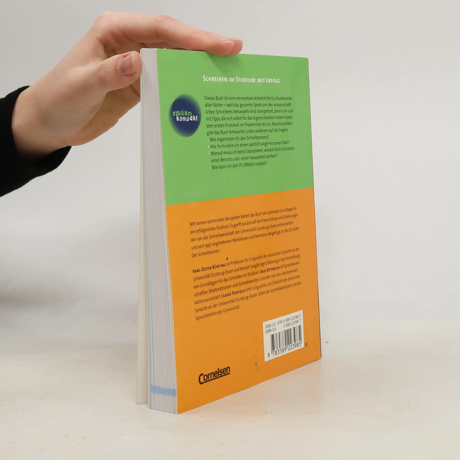 Dieses Buch ist eine elementare Arbeitshilfe für sämtliche Phasen des Studiums. Vom ersten Protokoll im Proseminar bis zur Abschlussarbeit - behandelt wird das gesamte Spektrum wissenschaftlichen Schreibens. Von der Themenwahl bis zum Layout - jeder einzelne Arbeitsschritt wird dabei ausführlich erläutert. Unentbehrlich für den Studienerfolg sind insbesondere die wertvollen Tipps, die sich sofort für die eigene Arbeit umsetzen lassen. Da das Buch nach dem Baukastenprinzip aufgebaut ist und jeder Abschnitt mit einem kurzen Überblick beginnt, kann der Leser an jeder beliebigen Stelle einsteigen. Für die Neuausgabe haben die Autoren das Buch gekürzt und noch praxisnäher gestaltet. Dabei konnten sie ihre langjährigen Erfahrungen mit Studierenden aller Fächer in der Schreibwerkstatt der Universität Essen einfließen lassen.