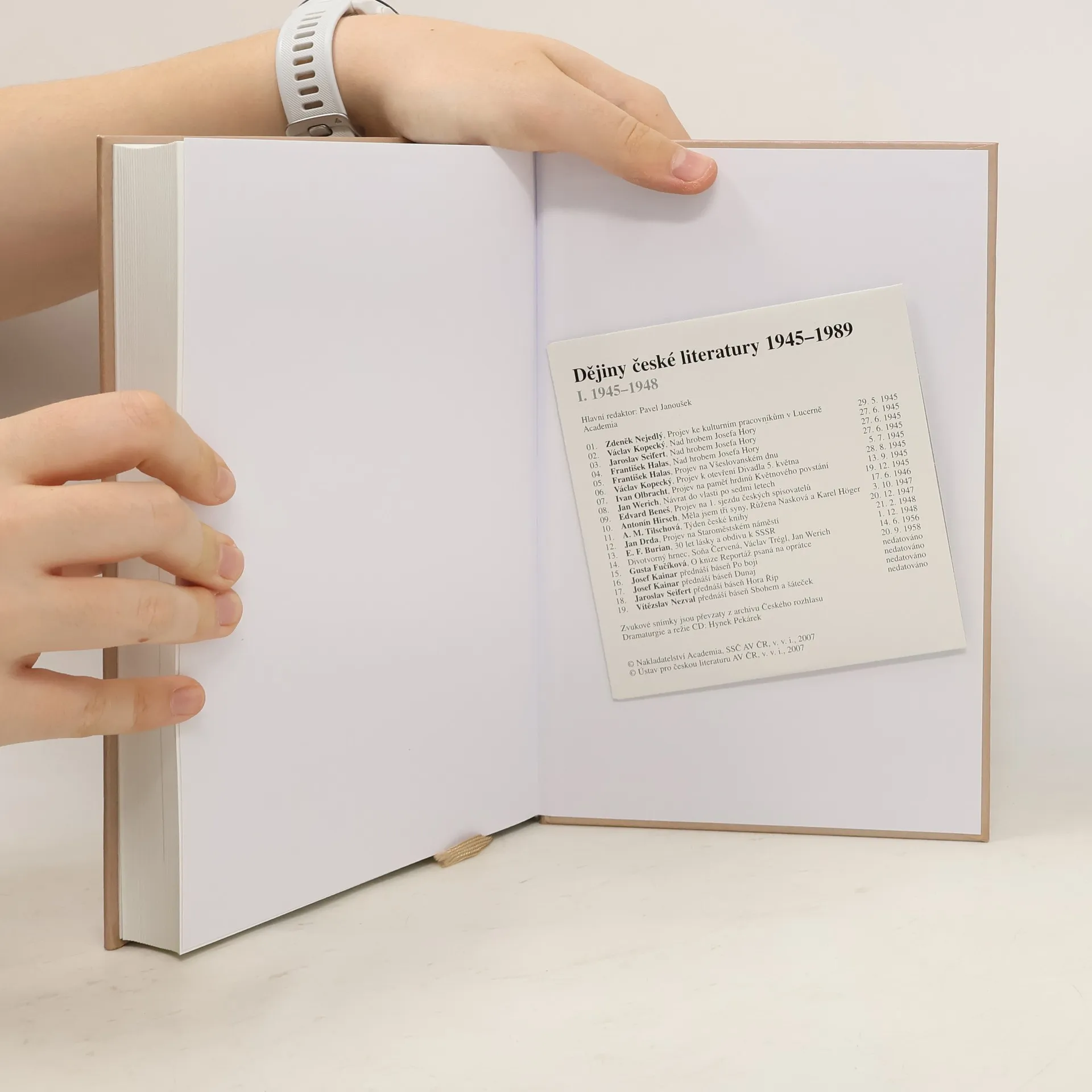 1945–1948. Svazek obsahuje první díl rozsáhlého čtyřdílného kompendia, jež podává ucelený výklad o vývoji české literatury v období od konce druhé světové války do pádu komunistického režimu v roce 1989. Na publikaci, která je projektem Ústavu pro českou literaturu AV ČR, se autorsky podílí více než padesát literárních vědců z nejrůznějších institucí, vedle pražského a brněnského pracoviště Ústavu pro českou literaturu AV ČR především filozofických a pedagogických fakult českých a moravských univerzit. Autoři zasazují literární vývoj do širších společenských, politických a kulturních souvislostí a věnují se všem oblastem literatury, tedy vedle krásné prózy, poezie a dramatu také např. literatuře pro děti a mládež, literatuře faktu, populární beletrii (tzv. lidové četbě), literatuře v rozhlasu a televizi, organizaci nakladatelského podnikání atd.