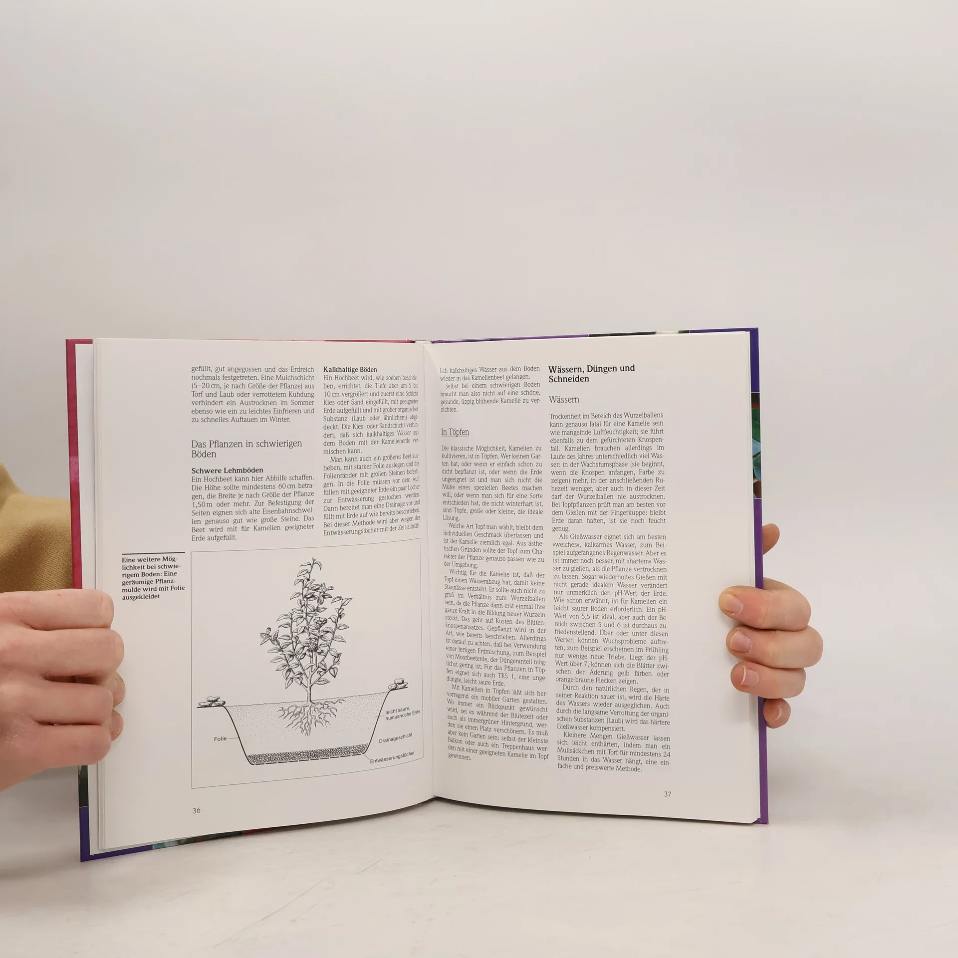 Kamelien stehen im Ruf empfindliche, schwierige Zimmerpflanzen zu sein, die nur Enttäuschung bereiten. Dass diese Meinung falsch ist, weiss jeder, der einmal im Frühjahr prächtig blühende Kameliensträucher in englischen oder Tessiner Gärten gesehen hat. Aber Kamelien gedeihen auch bei uns problemlos, wenn sie am richtigen Platz stehen. Sie können an geschützten Stellen im Garten wachsen, und sie sind wunderschöne Kübelpflanzen, die von Jahr zu Jahr schöner werden und üppiger blühen, wenn sie richtig gehalten werden. Worauf es dabei ankommt und welche Arten und Sorten am schönsten und am besten geeignet sind, beschreiben die Autoren aus eigener langjähriger Erfahrung.