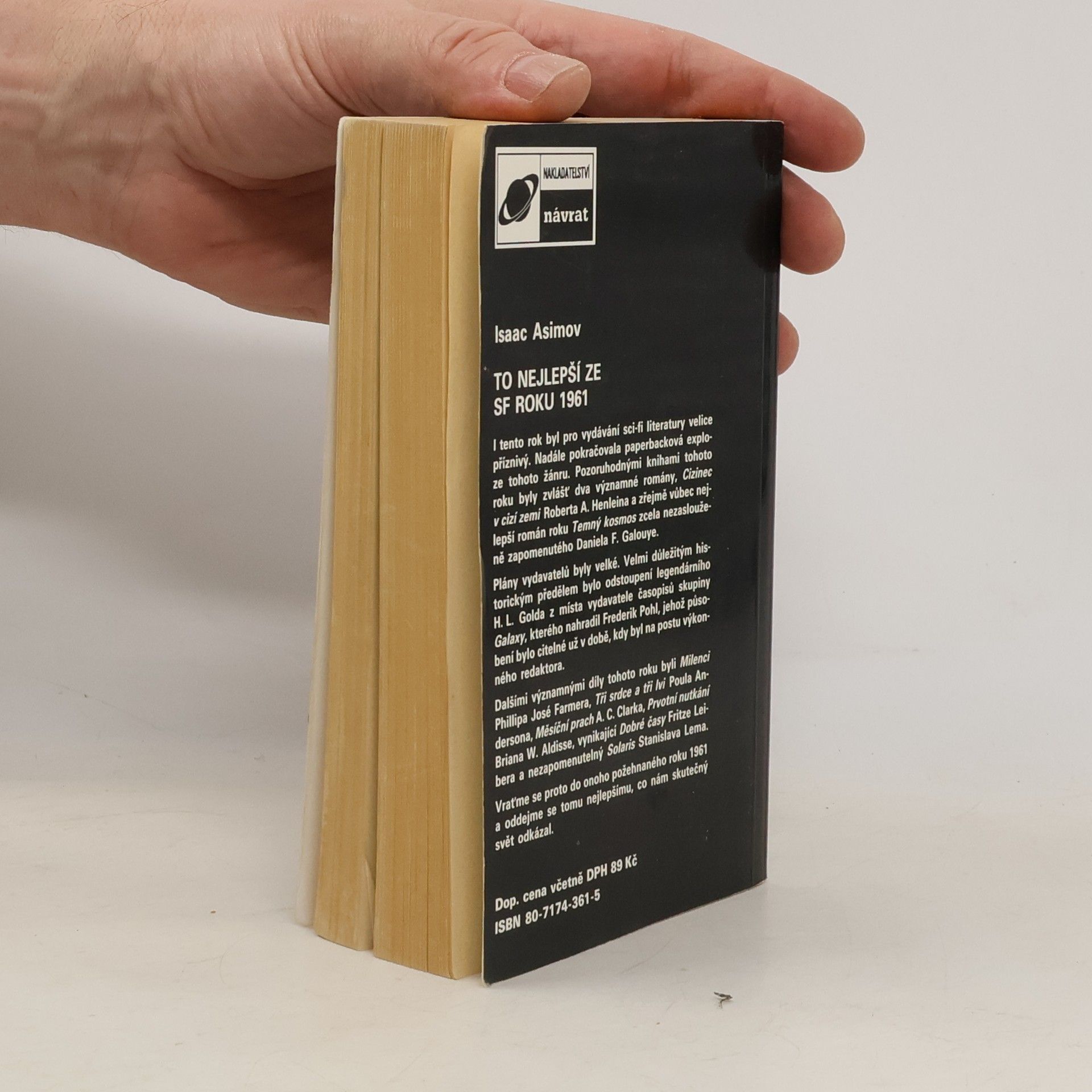 I rok 1961 byl pro vydávání sci-fi literatury velice příznivý. Nadále pokračovala paperbacková exploze tohoto žánru. Pozoruhodnými knihami tohoto roku byly zvlášť dva významné romány Cizinec v cizí zemi Roberta A. Heinleina a zřejmě vůbec nejlepší román roku Temný kosmos zcela nezaslouženě zapomenutého Daniela F. Galouye. Plány vydavatelů byly velké. Velmi důležitým historickým předělem bylo odstoupení legendárního H. L. Golda z místa vydavatele časopisů skupiny Galaxy, kterého nahradil Frederik Pohl, jehož působení bylo citelné už v době, kdy byl na postu výkonného redaktora. Dalšími významnými díly tohoto roku byli Milenci Phillipa José Farmera, Tři srdce, tři lvi Poula Andersona, Měsíční prach A. C. Clarka, Prvotní nutkání Briana W. Aldisse, vynikající Dobré časy Fritze Leibera a nezapomenutelný Solaris Stanisława Lema. Vraťme se proto do onoho požehnaného roku 1961 a oddejme se tomu nejlepšímu, co nám skutečný svět odkázal.