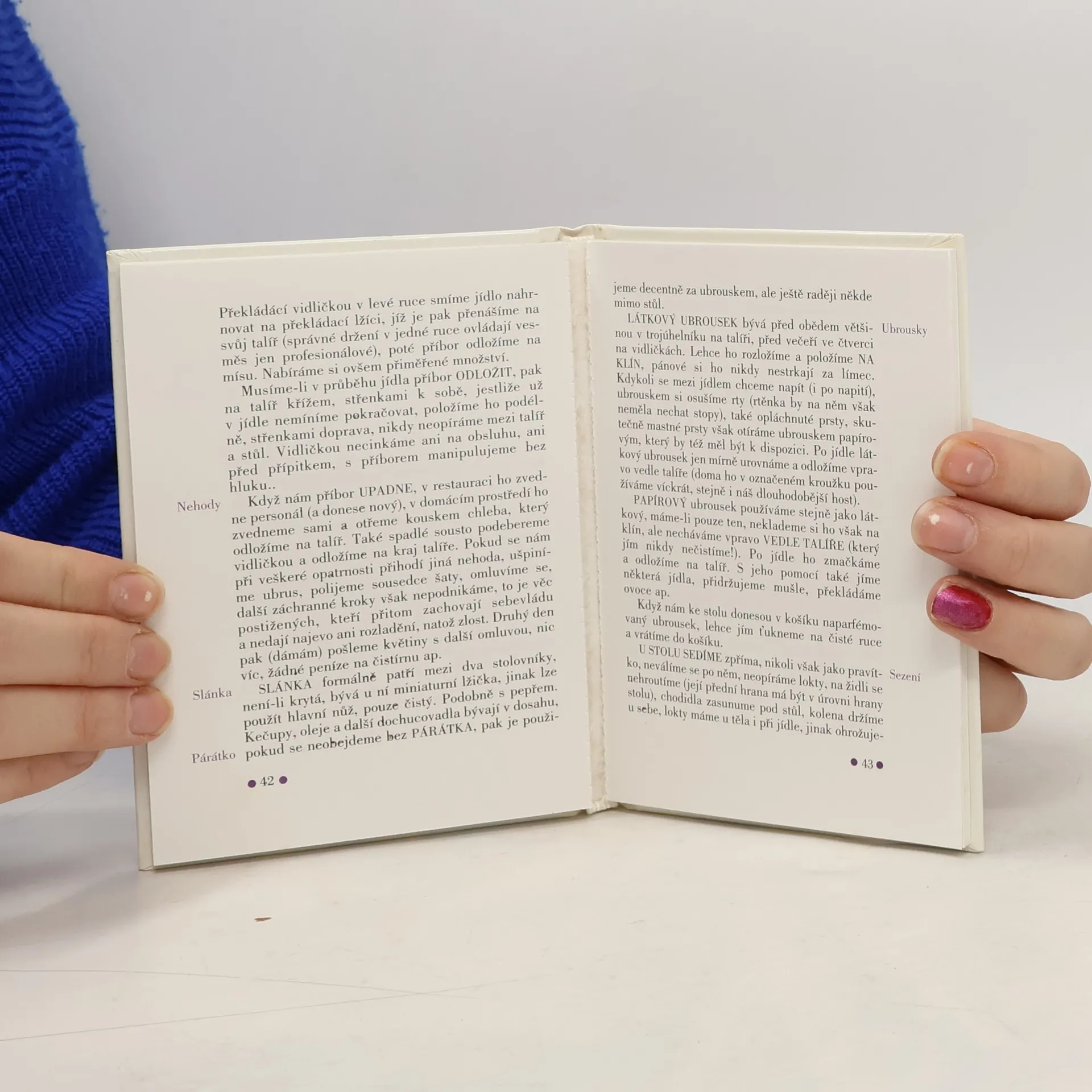 V knížce najdeme základní pravidla společenského chování pro malé i velké čtenáře. Komu kdy dát přednost, koho pozdravit první, jak se představovat, jak správně koho oslovovat, kdy komu nabídnout tykání, jak psát správně dopis, jaké oblečení zvolit do společnosti, jak se ve společnosti chovat, jak správně stolovat a další rady usnadní život každému, kdo chce ve společnosti obstát bez úhony a se ctí.