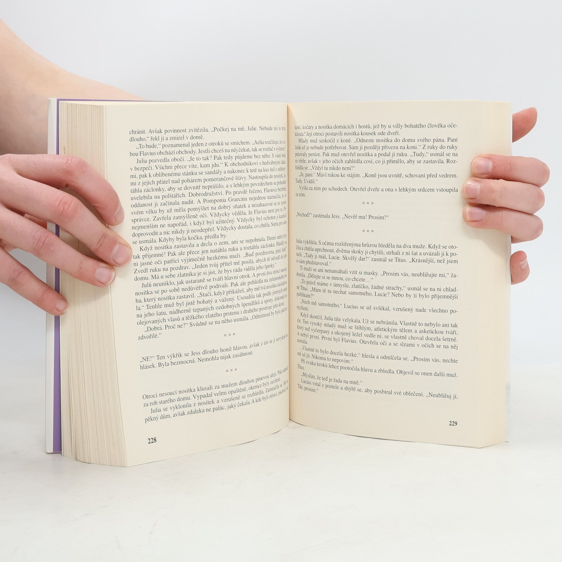 Román oblíbené autorky se opět odehrává ve dvou časových rovinách – v současnosti a keltsko-římském starověku. Pojítkem mezi oběma hlavními postavami, londýnskou vysokoškolskou učitelkou Jess a dcerou keltského krále Eigon, je děsivá zkušenost znásilnění a pronásledování. Opět čtenáře čeká mnoho nečekaných zvratů, v nichž se dnešek prolíná s historií. V té ožívá starověký Řím v prvních desetiletích císařství, v době svatého Petra a pronásledování křesťanů, v době vlády císařů Claudia a později i Nerona. Děj se pak vrací do Británie v 1. stol. n. l. Současný příběh se odehraje během jednoho léta ve Walesu a v Římě a dramatické prožitky hrdinky Jess také tady souvisejí s dávným příběhem ze starověku.