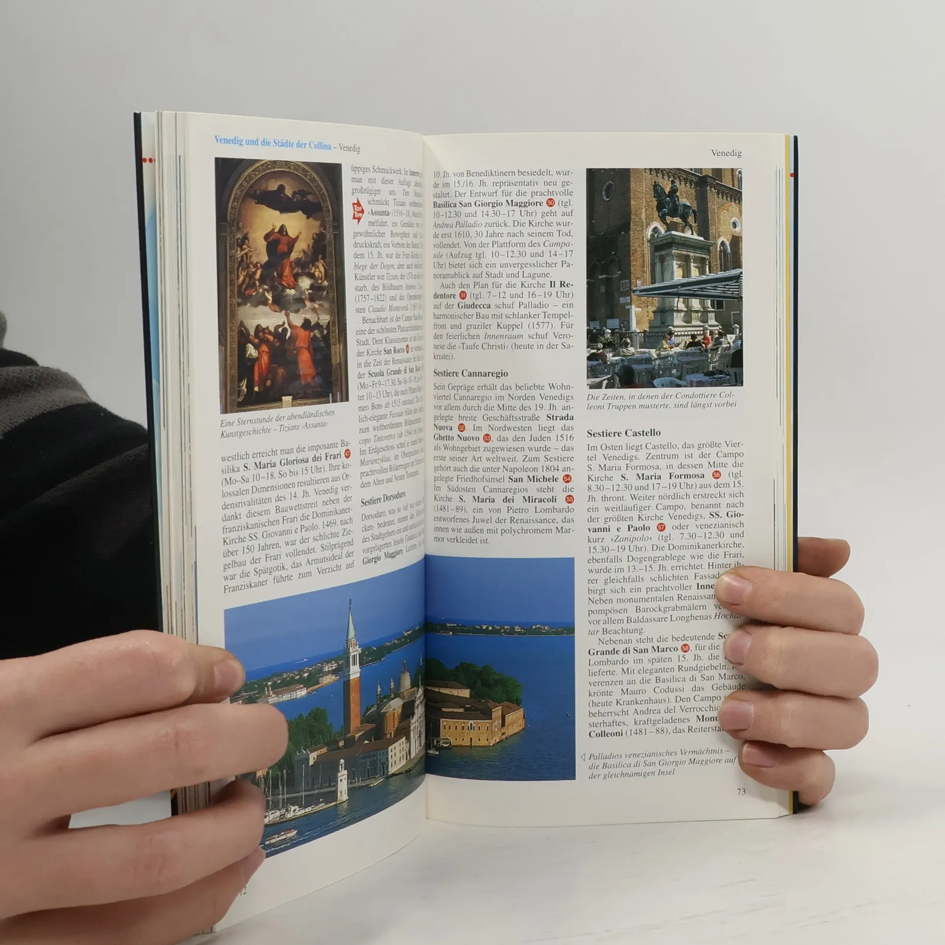 Venetien und Friaul gehören zu den facettenreichsten Kulturlandschaften Italiens. Eindrucksvoll ist das Widerspiel von Natur und Kultur, von schroffen Felsformationen am Südrand der Dolomiten, von sanften Rebhängen im Weinbaugebiet des Collio und altehrwürdigen Städten voller Kunst wie Verona, Venedig, Padua, Vicenza und Triest. Wendezeiten prägten von jeher das Schicksal Venetiens und Friauls. Im 5. Jh. gründeten Flüchtlinge der Völkerwanderung auf den Inseln der Lagune eine Stadt, die längst zum Inbegriff morbider Schönheit geworden ist: Venedig. Mit den Fresken in Paduas Cappella degli Scrovegni schuf Giotto im frühen 14. Jh. die ersten Vorbilder der Renaissance und ihres neuen Blicks auf Mensch und Welt. In Andrea Palladios prachtvollen Bauten, dem Teatro Olimpico von Vicenza oder den Villen am Brenta-Kanal, bestaunt man die Zeug-nisse eines Genies, dessen Ideen die Architekturgeschichte maßgeblich prägten.
