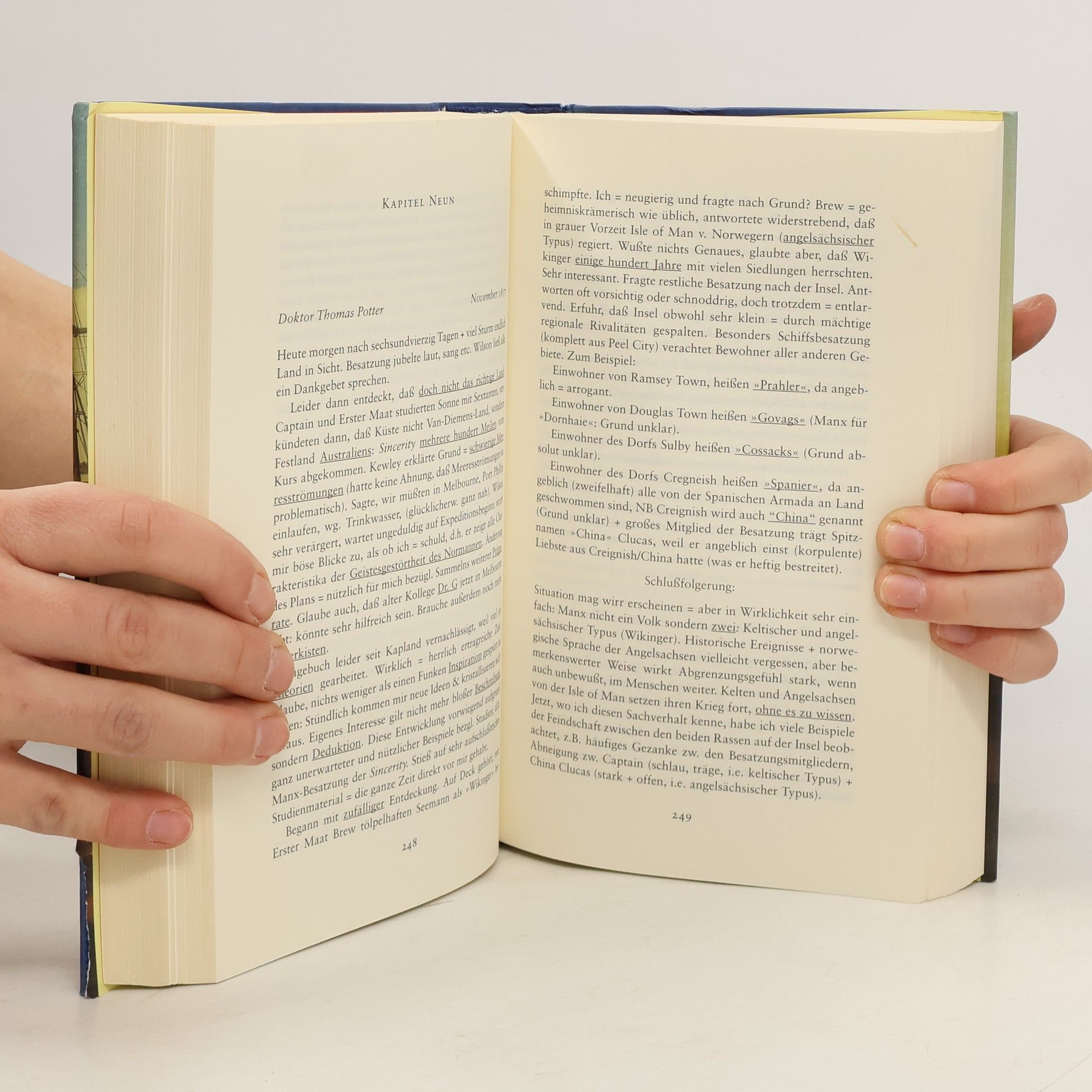 Eine faszinierende Geschichte, prächtig erzählt: Ein Schmugglerschiff von der Isle of Man mit drei verrückten Engländern als Passagieren sucht in Tasmanien den Garten Eden, während das Paradies von ihren Landsmännern zur Strafkolonie gemacht wird. Matthew Kneales Werk vereint Seefahrer- und Schelmenroman und bietet ein großes geschichtliches Panorama. Im Jahr 1857 stechen Captain Illiam Quillian Kewley und seine Männer mit der doppelwandigen Sincerity in See, um Cognac und Tabak von Frankreich nach England zu transportieren, ohne zu ahnen, wohin ihre Reise sie wirklich führen wird. Der englische Zoll erweist sich als wachsamer, und bald finden sie sich im Londoner Hafen wieder, wo ihre Konterbande zwar unentdeckt bleibt, sie jedoch durch Hafengebühren und Strafzahlungen in Gefahr sind, ihr Schiff zu verlieren. Rettung verspricht eine Expedition verrückter Engländer, die in Tasmanien den Garten Eden entdecken wollen. Kneale gelingt es, ein spannendes, detailreiches und historisch fundiertes Buch zu schaffen, das Humor und Ernsthaftigkeit vereint und mit einer einzigartigen Erzählkraft aufwartet. Matthew Kneale, 1960 in London geboren, studierte Neuere Geschichte in Oxford und entschloss sich dann zum Schreiben. Er wurde mit dem Somerset Maugham Award und dem John Llewellyn Rhys Award ausgezeichnet.