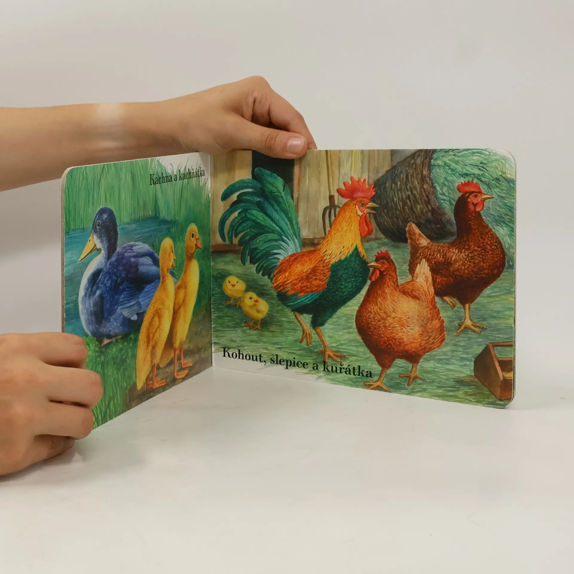Leporelo pro nejmenší děti s krásnými ilustracemi nejoblíbenějších domácích zvířat, jako jsou koza s kůzlátkem, ovečka s jehňátkem a mnoho dalších. Naučte své děti, aby je bezpečně rozeznávaly a uměly správně pojmenovat.
