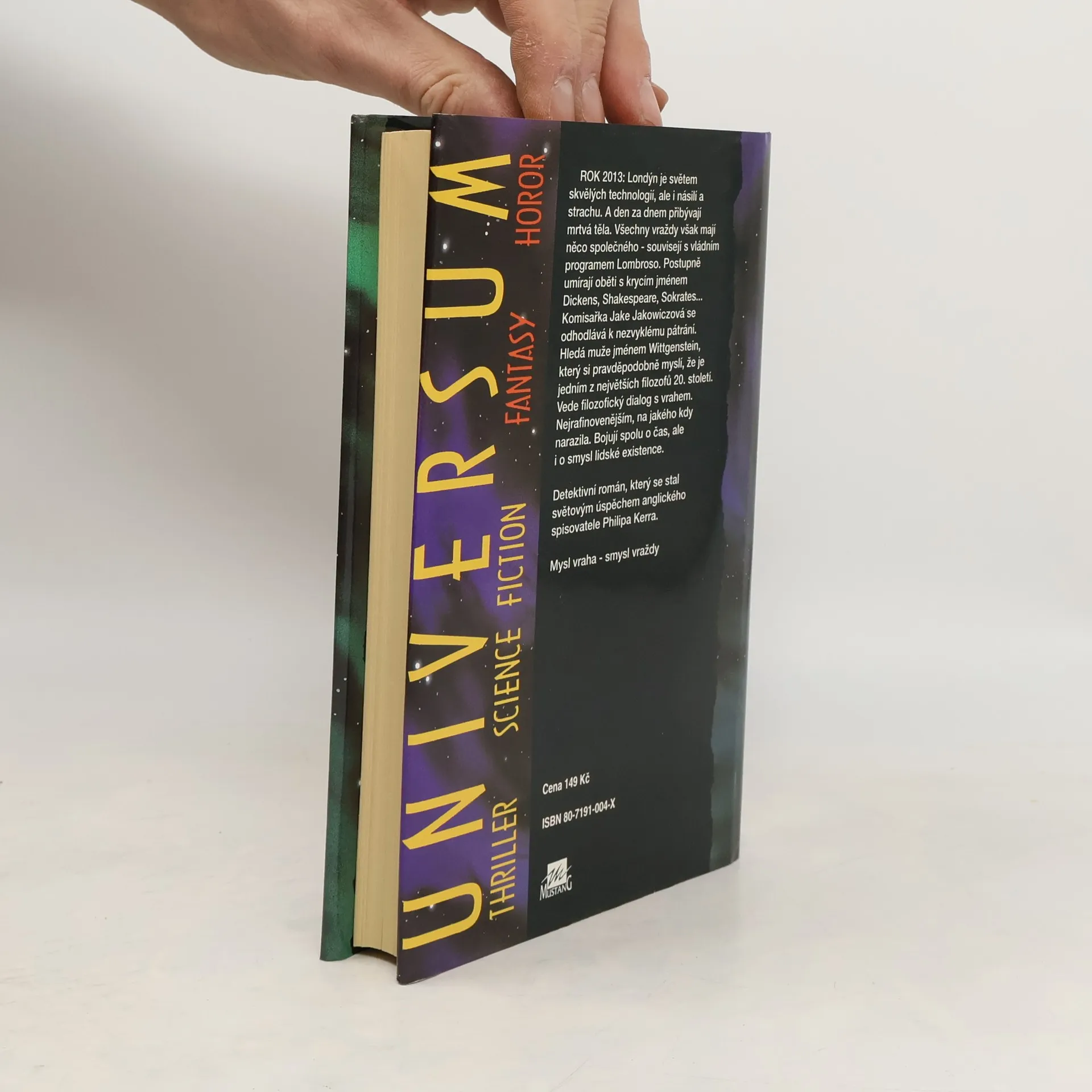 Rok 2013: Londýn je světem skvělých technologií, ale i násilí a strachu. A den za dnem přibývají mrtvá těla. Všechny vraždy však mají něco společného – souvisejí s vládním programem Lombroso. Postupně umírají oběti s krycím jménem Dickens, Shakespeare, Sokrates… Komisařka Jake Jakowiczová se odhodlává k nezvyklému pátrání. Hledá muže jménem Wittgenstein, který si pravděpodobně myslí, že je jedním z největších filozofů 20. století. Vede filozofický dialog s vrahem. Nejrafinovanějším, na jakého kdy narazila. Bojují spolu o čas, ale i o smysl lidské existence.