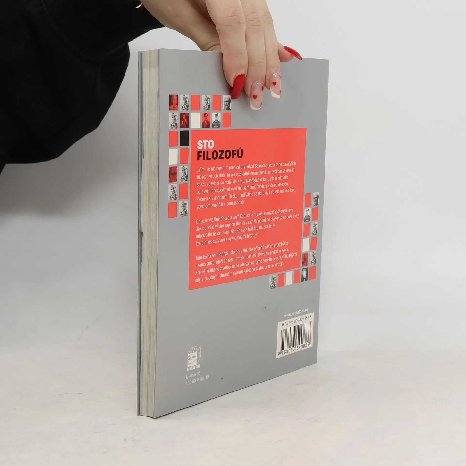 Tato kniha shrnuje sto portrétů, sto příběhů našich předchůdců i současníků, kteří dokázali změnit pohled lidstva na podstatu světa. Kromě krátkého životopisu se seznámíte s nejdůležitějšími díly a stručným shrnutím názorů každého zastoupeného filozofa.