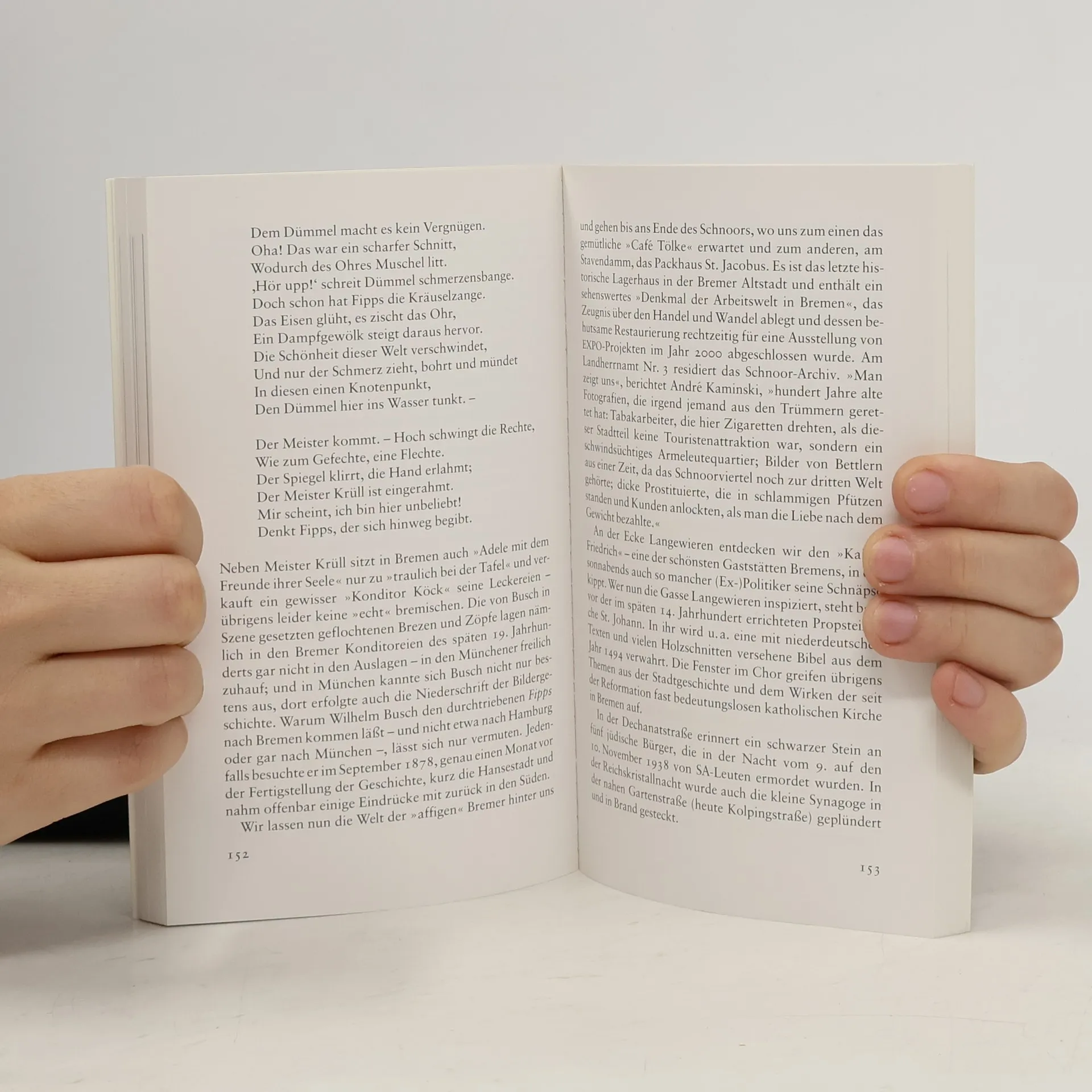 Hier gelt ich nichts, und würde gern was gelten, / Denn diese Stadt ist echt, und echt ist selten«, befand Joachim Ringelnatz nach einem Besuch in Bremen. Die Freie Hansestadt wurde bereits vor 1000 Jahren als »Rom des Nordens« gepriesen, war Martin Luther ebenso ein Begriff wie Goethe. Was Wunder, seit dem Welterfolg des Grimmschen Märchens von den Bremer Stadtmusikanten weiß schließlich jedes Kind, daß Bremen ein lohnendes Reiseziel ist – und sei