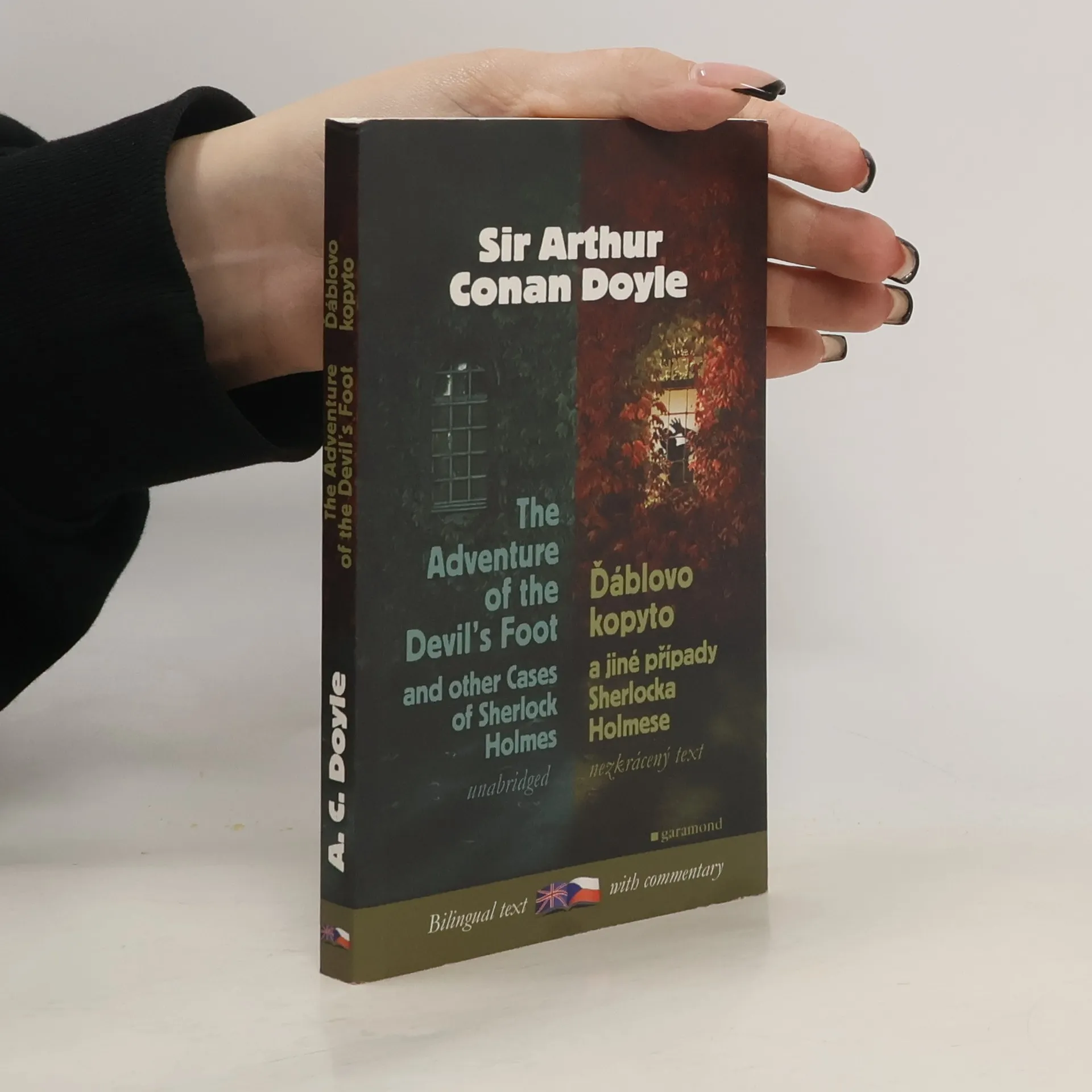 Dvěma slavnými případy geniálního detektiva Sherlocka Holmese z pera Arthura Conana Doyla, jimiž jsou Ďáblovo kopyto a Záhada na Thorském mostě, jako vždy provází obětavý Holmesův společník, doktor Watson. Ďáblovo kopyto sám Holmes označuje za svůj „nejpodivnější případ“. Atmosféra staré Anglie, obývané gentlemany jemných mravů a bystrého úsudku, ale i proradnými padouchy a zákeřnými zločinci skrývajícími se ve všudypřítomné mlze a ohrožujícími životy krásných dam, to jsou dnes již klasické povídky A. C. Doyla. Bilingvní nezkrácený text s komentářem.