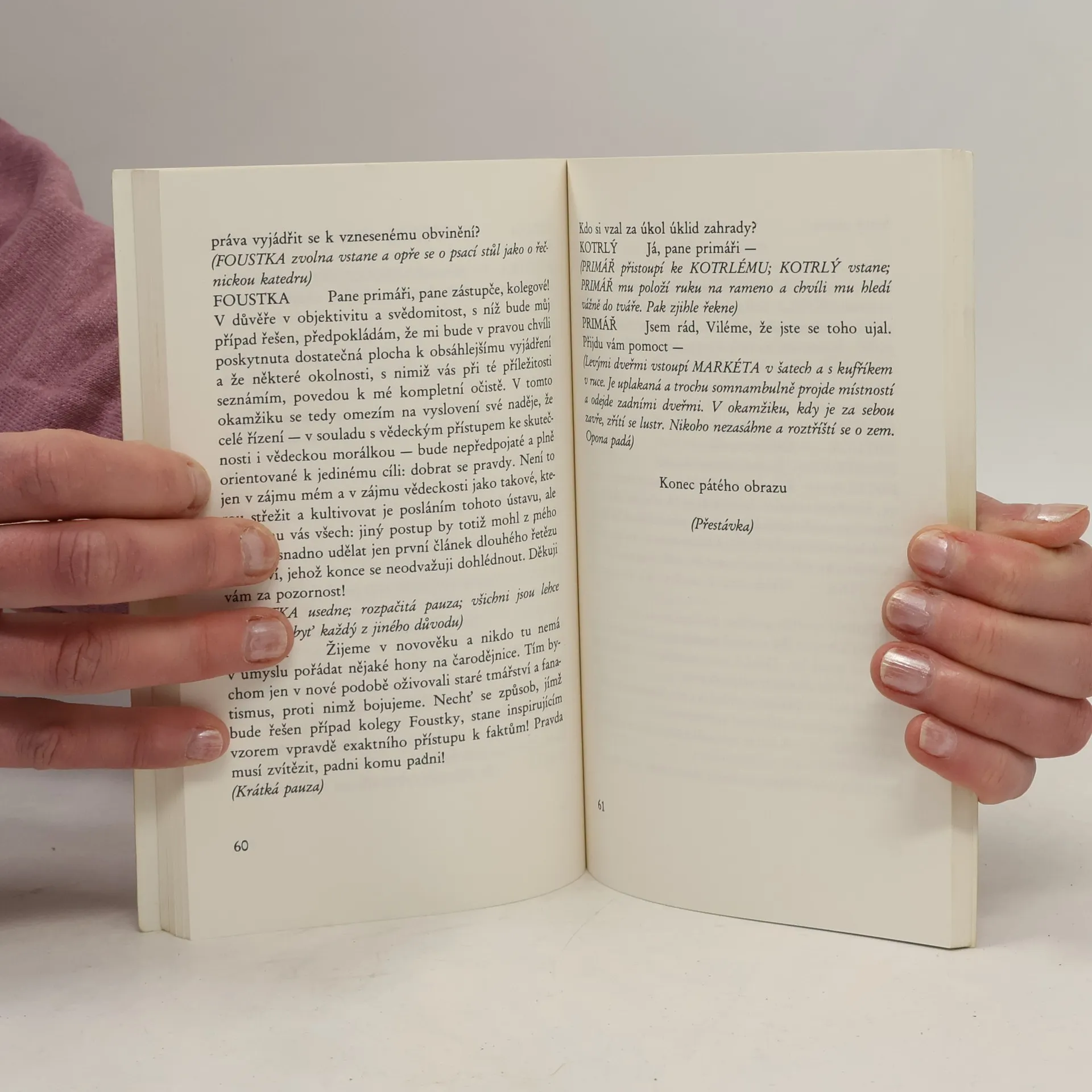 Hra o deseti obrazech s faustovským motivem se odehrává ve vědeckém ústavu. Hlavní postava vědec Foustka zatouží po metafyzickém poznání, do nějž ho má zasvětit invalidní důchodce Fistula.