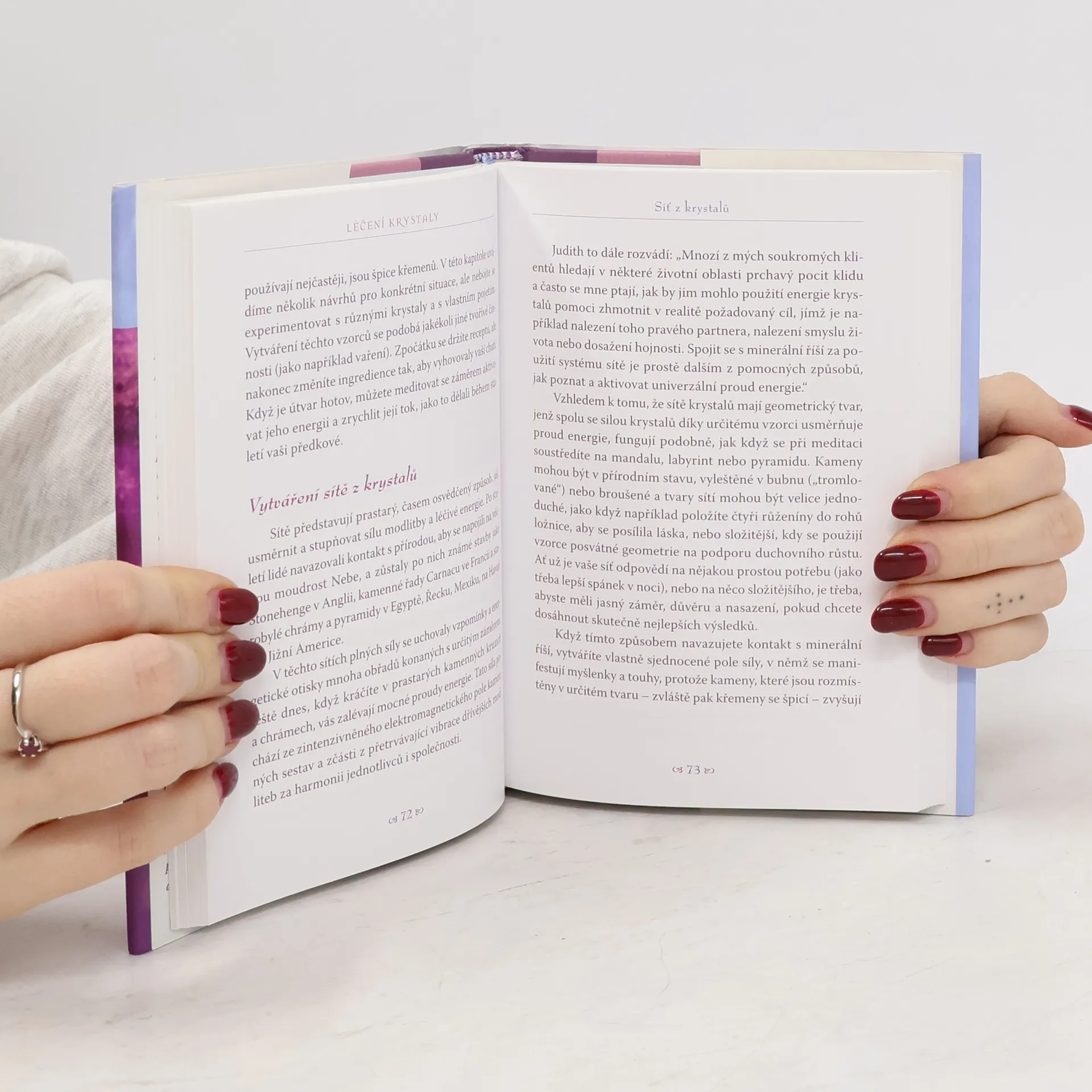 S podtitulem: Jak se vyléčit a jak dodat svému životu energii pomocí krystalů. Praktický průvodce léčením s pomocí 94 drahých kamenů, ilustrovaný krásnými barevnými fotografiemi každé rodiny krystalů. Kniha je vhodná pro začátečníky i pro zkušené praktiky a soustředí se na krystaly, které jsou snadno dostupné. Dozvíte se, který krystal použít na konkrétní zdravotní nebo životní problém, dostane se vám jasného vysvětlení pojmů týkajících se krystalů (jako například fantom a uchovavatel záznamů), zjistíte, jak si vybrat krystal, který byl vytěžen šetrným způsobem, a přečtete si fascinující poselství získané channelingem od samotných kamenů. Autorky pojednávají o tom, jak krystaly působí spolu s anděly a archanděly, a popisují, jak rozmístit konkrétní kameny ve vašem domově, a vybudovat tak energetické sítě, jež prospívají hojnosti, milostnému životu, dobrému spánku, ochraně a dalším záležitostem.