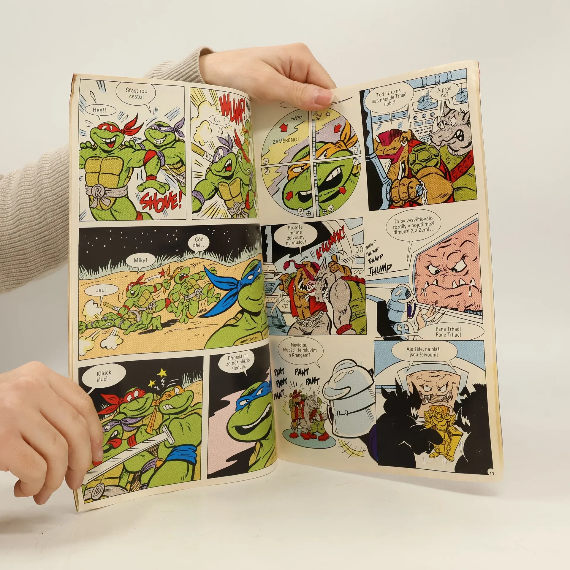 Příběh: Boj o sochu Svobody Sešit ze serie příběhu neunávných želvých bojovníků a milovníků pizzy - Donatellem, Michelangelem a Raffaelem. A nejen s nimi se setkáte, ale také s April O'Neilovou, atraktivní reportérkou, s Třískou, učitelem starého japonského bojového umění nindžutsu, a samozřejmě s Trhačem, jejich úhlavním nepřítelem, který chce ovládnout celý svět...