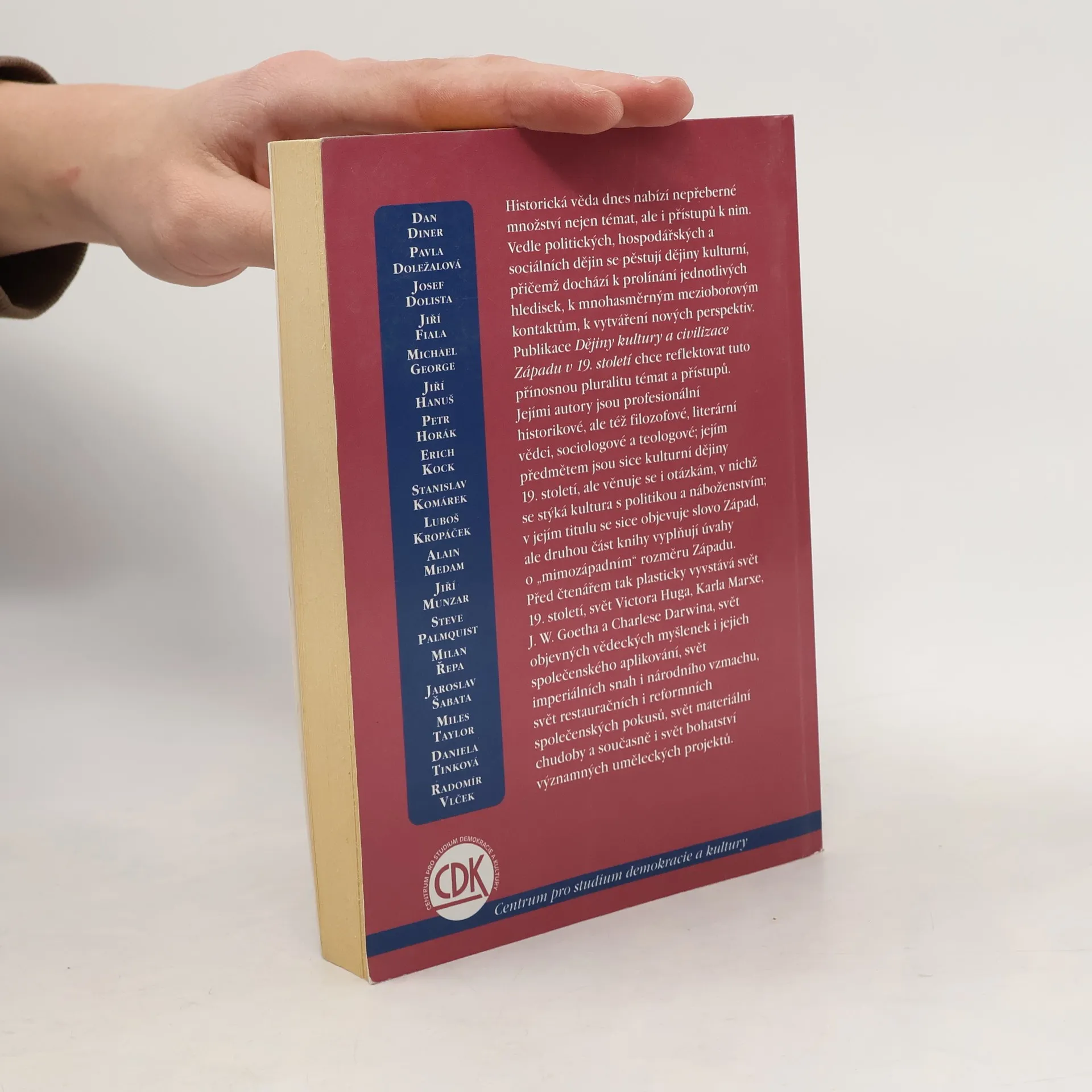Historická věda dnes nabízí nepřeberné množství nejen témat, ale i přístupů k nim. Vedle politických, hospodářských a sociálních dějin se pěstují dějiny kulturní, přičemž dochází k prolínání jednotlivých hledisek, k mnohasměrným mezioborovým kontaktům, k vytváření nových perspektiv. Publikace Dějiny kultury a civilizace Západu v 19. století chce reflektovat tuto přínosnou pluralitu témat a přístupů. Jejími autory jsou profesionální historikové, ale též filozofové, literární vědci, sociologové a teologové. Jejím předmětem jsou sice kulturní dějiny 19. století, ale věnuje se i otázkám, v nichž se stýká kultura s politikou a náboženstvím. V jejím titulu se sice objevuje slovo Západ, ale druhou část knihy vyplňují úvahy o „mimozápadním“ rozměru Západu. Před čtenářem tak plasticky vyvstává svět 19. století, svět Victora Huga, Karla Marxe, J. W. Goetha a Charlese Darwina, svět objevných vědeckých myšlenek i jejich společenského aplikování, svět imperiálních snah i národního vzmachu, svět restauračních i reformních společenských pokusů, svět materiální chudoby a současně i svět bohatství významných uměleckých projektů. Autoři: DAN DINER, PAVLA DOLEŽALOVÁ, JOSEF DOLISTA, JIŘÍ FIALA, MICHAEL GEORGE, JIŘÍ HANUŠ, PETR HORÁK, ERICH KOCK, STANISLAV KOMÁREK, LUBOŠ KROPÁČEK, ALAIN MEDAM, JIŘÍ MUNZAR, STEVE PALMQUIST, MILAN ŘEPA, JAROSLAV ŠABATA, MILES TAYLOR, DANIELA TINKOVÁ, RADOMÍR VLČEK