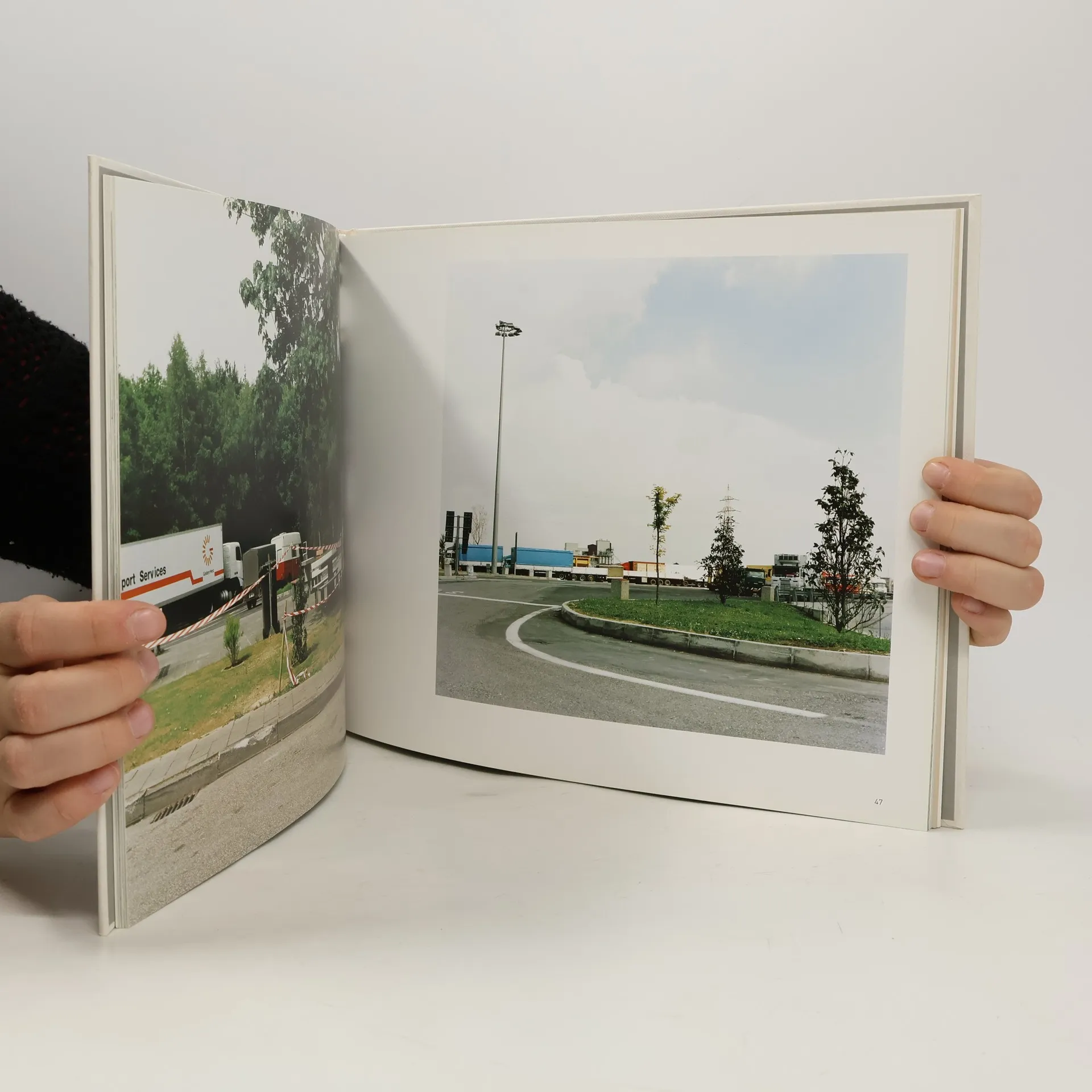 Uschi Huber is an important figure in the current wave of German photography, part of a group of young photographers who have established themselves at the forefront of the international photography scene. The photographs presented here emerged out of a three-year project by German photographer Uschi Huber in which, during the years 1997-1999, she walked various European highways, capturing their speed, anonymity, utility and jarring industrial intrusion into the natural landscape. The accompanying text by Daniel Stemmrich discusses the behavior of people in cars and his intermingled joy and fear of the road.