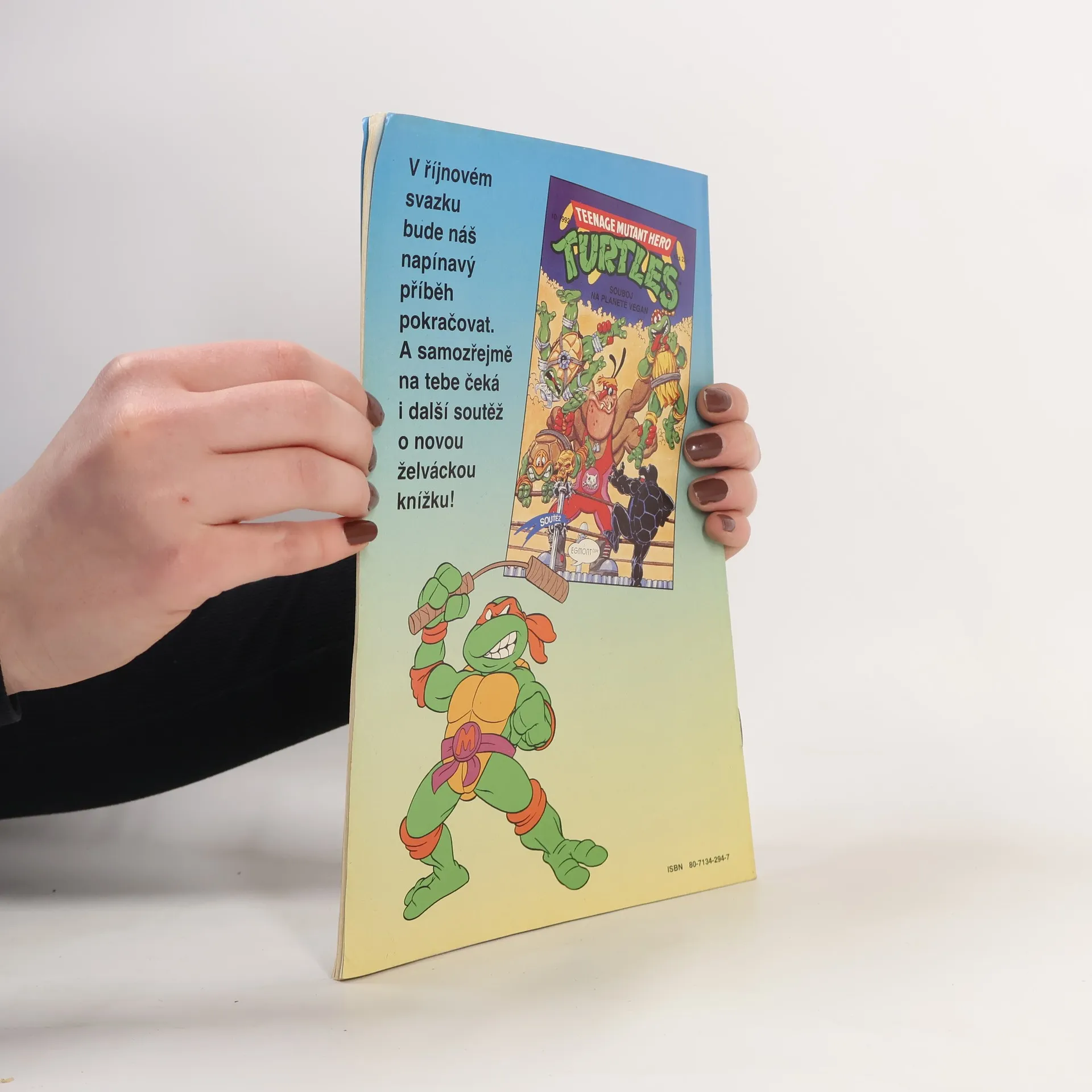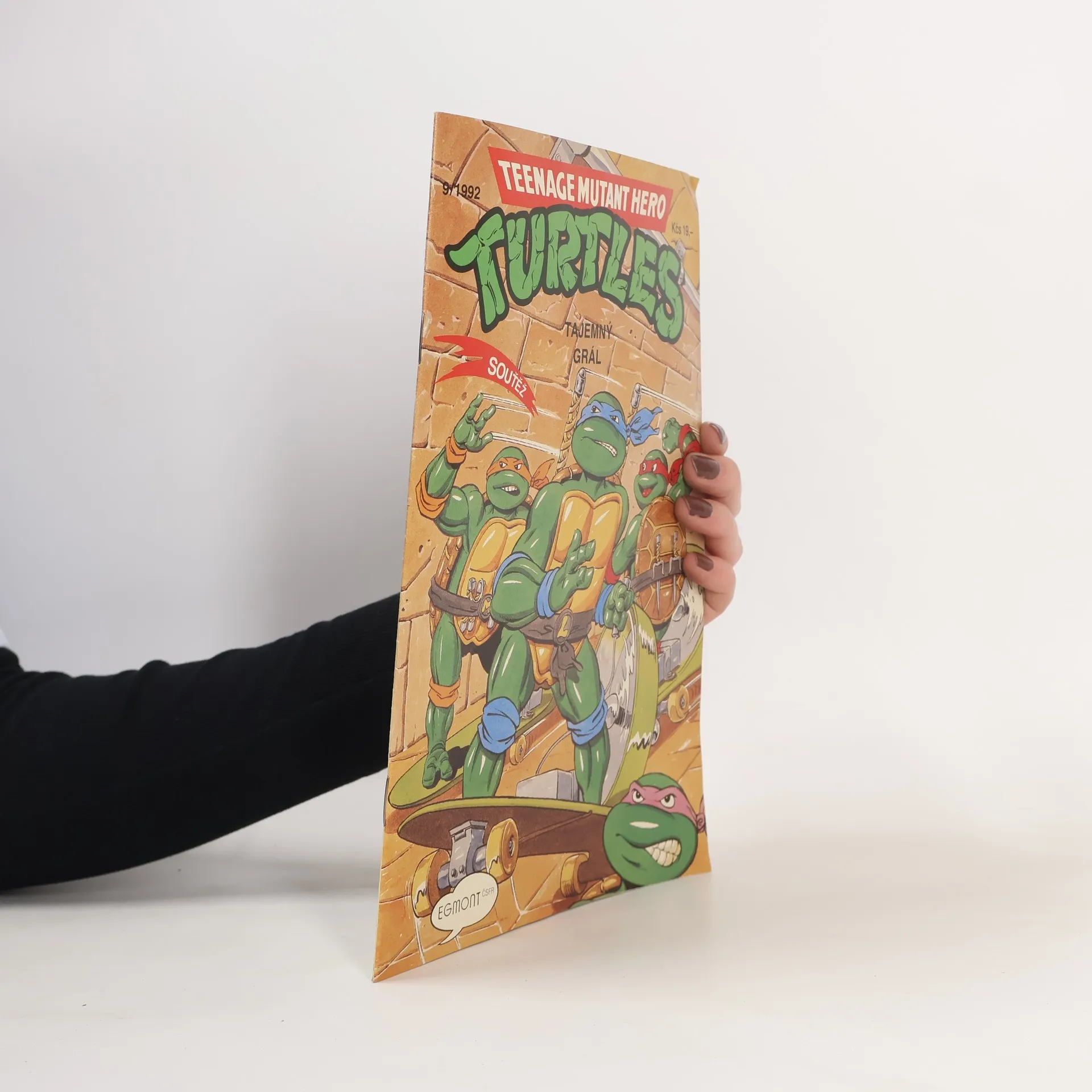 Příběh: Tajemný grál Sešit ze serie příběhu neunávných želvých bojovníků a milovníků pizzy - Donatellem, Michelangelem a Raffaelem. A nejen s nimi se setkáte, ale také s April O'Neilovou, atraktivní reportérkou, s Třískou, učitelem starého japonského bojového umění nindžutsu, a samozřejmě s Trhačem, jejich úhlavním nepřítelem, který chce ovládnout celý svět...