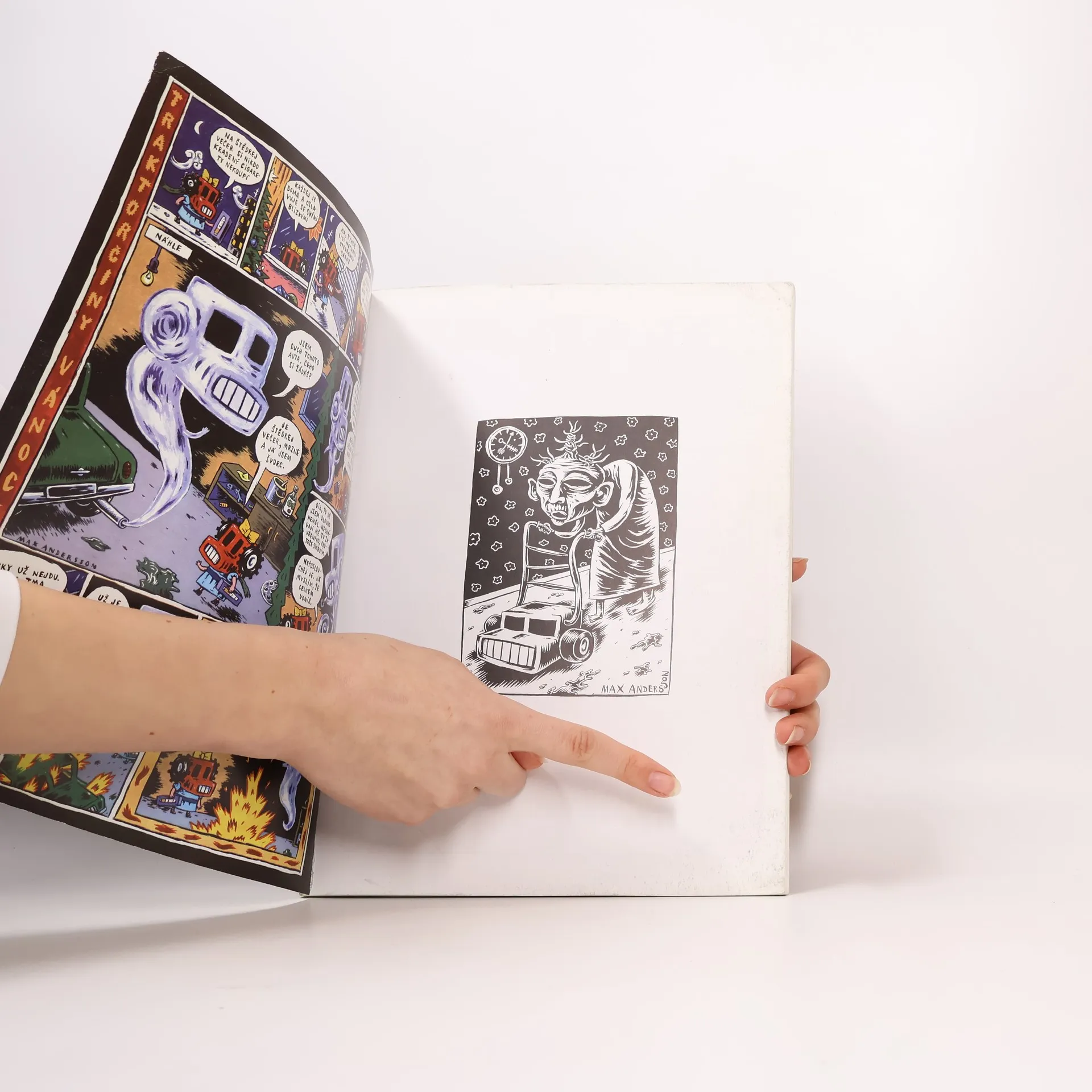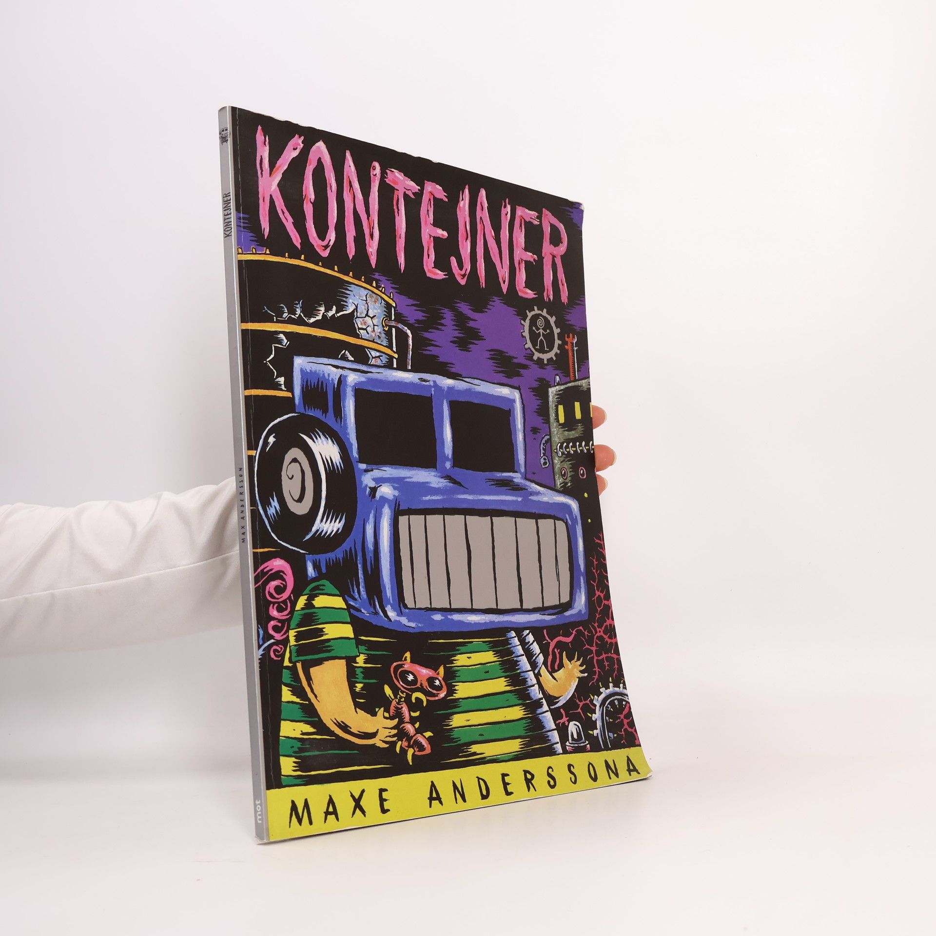 Co je Kontejner? Výběr z Anderssonových komiksů, které vyšly porůznu časopisecky v různých zemích a z nichž většina se zrodila až po proslulém, v osmi jazycích vydaném Pixym. Kontejner obsahuje celkem 20 příběhů v délce od 1 do 15 stran, z toho tři plnobarevné. O čem je Kontejner? Max Andersson je dítě punkové kultury, ale jeho práce kromě řezavé ironie nepostrádají cit ani nesmírně originální vidění světa. Takže nejen uřezané nohy a ruce, ale také ampérožrouti, zombokrálíčci, zabijáci aut a zrádní plyšoví mazlíci… Některé příběhy z Kontejneru jsou určitě morbidní. Jiné jsou dětsky naivní. OBSAH KONTEJNERU: (v závorce počet stran) Lovci hluků (1) Smrt (15) Film (1) Lolita (6) interview s Maxem Anderssonem (1) Auťáček a případ zabijáků automobilů (6) Johnny Bouchačka (2) Příroda (1) Kletba továrny na plyšové mazlíčky (13) Co vyprávěl vodovodní kohoutek (2) Bouráček (1) Bouráček Bombonosič (8) Dejmita (2) Santa Klaus dobrý, Santa Klaus zlý (6) bibliografie Maxe Anderssona (1) Pez & Mengele (1) Číselný kód (1) Lovci hluků 2 (1) Auťáčkova zahrádka (16) na obálce: Traktorčiny Vánoce (1) Transporťáček (1) Rebelové s přičiněním (1)