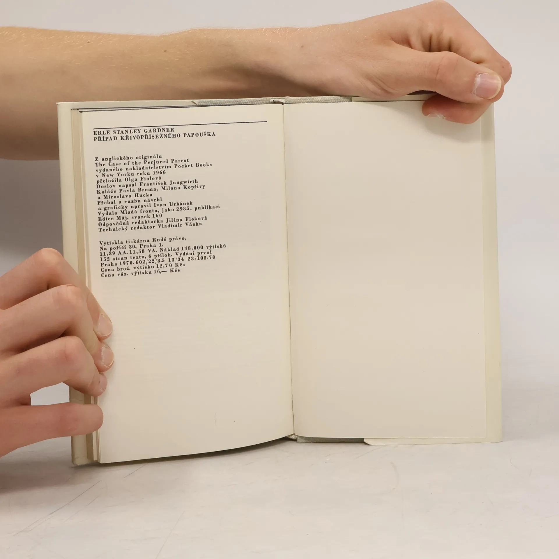 Dějově komplikovaný detektivní příběh, jehož objasnění je ztíženo falešným svědectvím mluvícího papouška. Situaci, v níž se ocitla mladá žena obviněná z vraždy svého manžela, řeší po právní i logické stránce slavný advokát Perry Mason se svými spolupracovníky a jako vždy itentokrát jeho brilantní dedukce vede k odhalení skutečného pachatele. 23-108-70