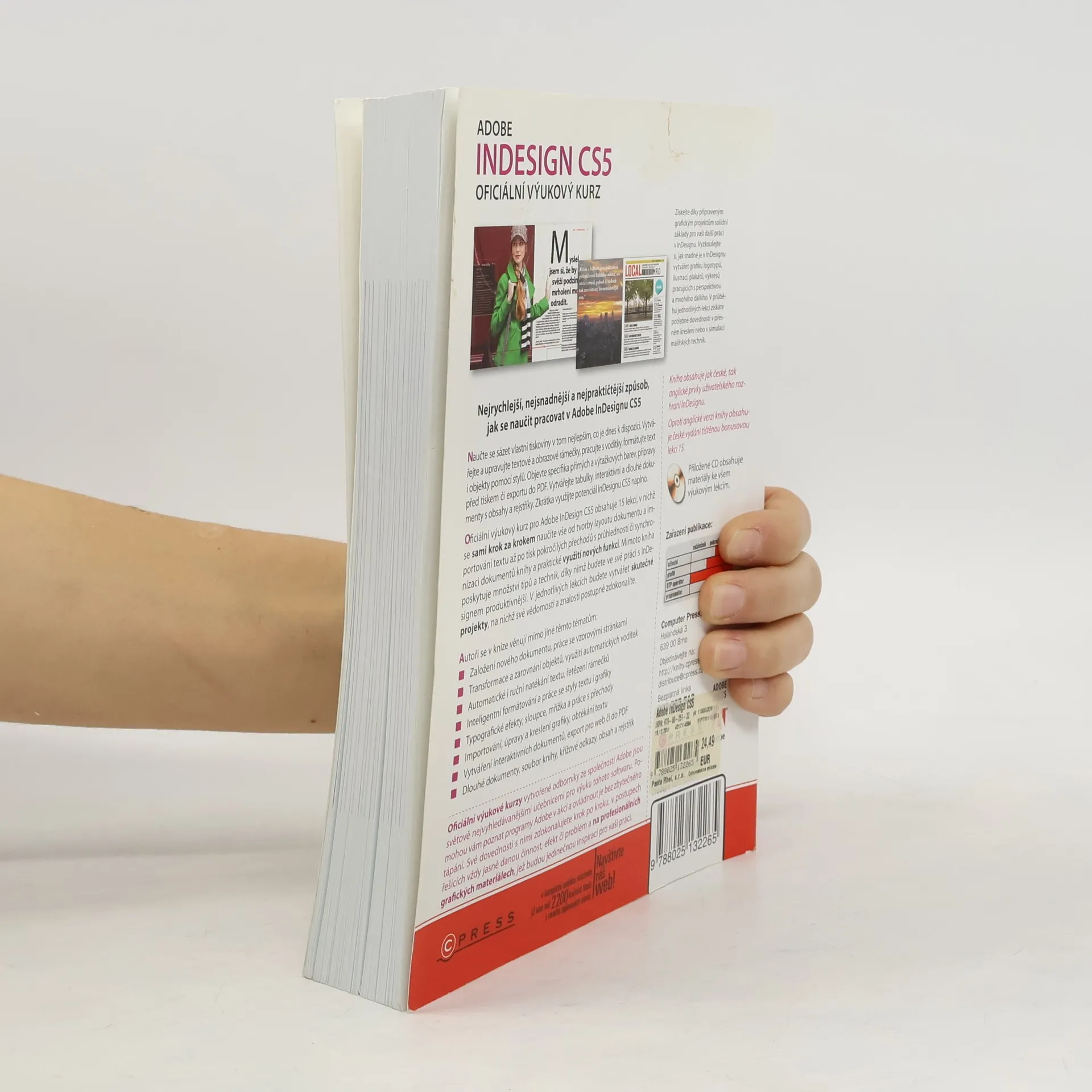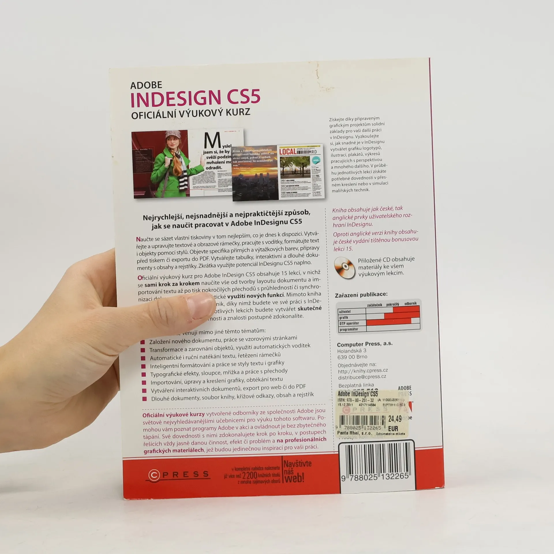 Získejte díky připraveným grafickým projektům solidní základy pro vaši další práci v InDesignu. Vyzkoušejte si, jak snadné je v InDesignu vytvářet grafiku logotypů, ilustrací, plakátů, výkresů pracujících s perspektivou a mnohého dalšího. V průběhu jednotlivých lekcí získáte potřebné dovednosti v přesném kreslení nebo v simulaci malířských technik. Nejrychlejší, nejsnadnější a nejpraktičtější způsob, jak se naučit pracovat v Adobe InDesignu CS5 Naučte se sázet vlastní tiskoviny v tom nejlepším, co je dnes k dispozici. Vytvářejte a upravujte textové a obrazové rámečky, pracujte s vodítky, formátujte text i objekty pomocí stylů. Objevte specifika přímých a výtažkových barev, přípravy před tiskem či exportu do PDF. Vytvářejte tabulky, interaktivní a dlouhé dokumenty s obsahy a rejstříky. Zkrátka využijte potenciál InDesignu CS5 naplno. Oficiální výukový kurz pro Adobe InDesign CS5 obsahuje 15 lekcí, v nichž se sami krok za krokem naučíte vše od tvorby layoutu dokumentu a importování textu až po tisk pokročilých přechodů s průhledností či synchronizaci dokumentů knihy a praktické využití nových funkcí. Mimoto kniha poskytuje množství tipů a technik, díky nimž budete ve své práci s InDesignem produktivnější. V jednotlivých lekcích budete vytvářet skutečné projekty, na nichž své vědomosti a znalosti postupně zdokonalíte.