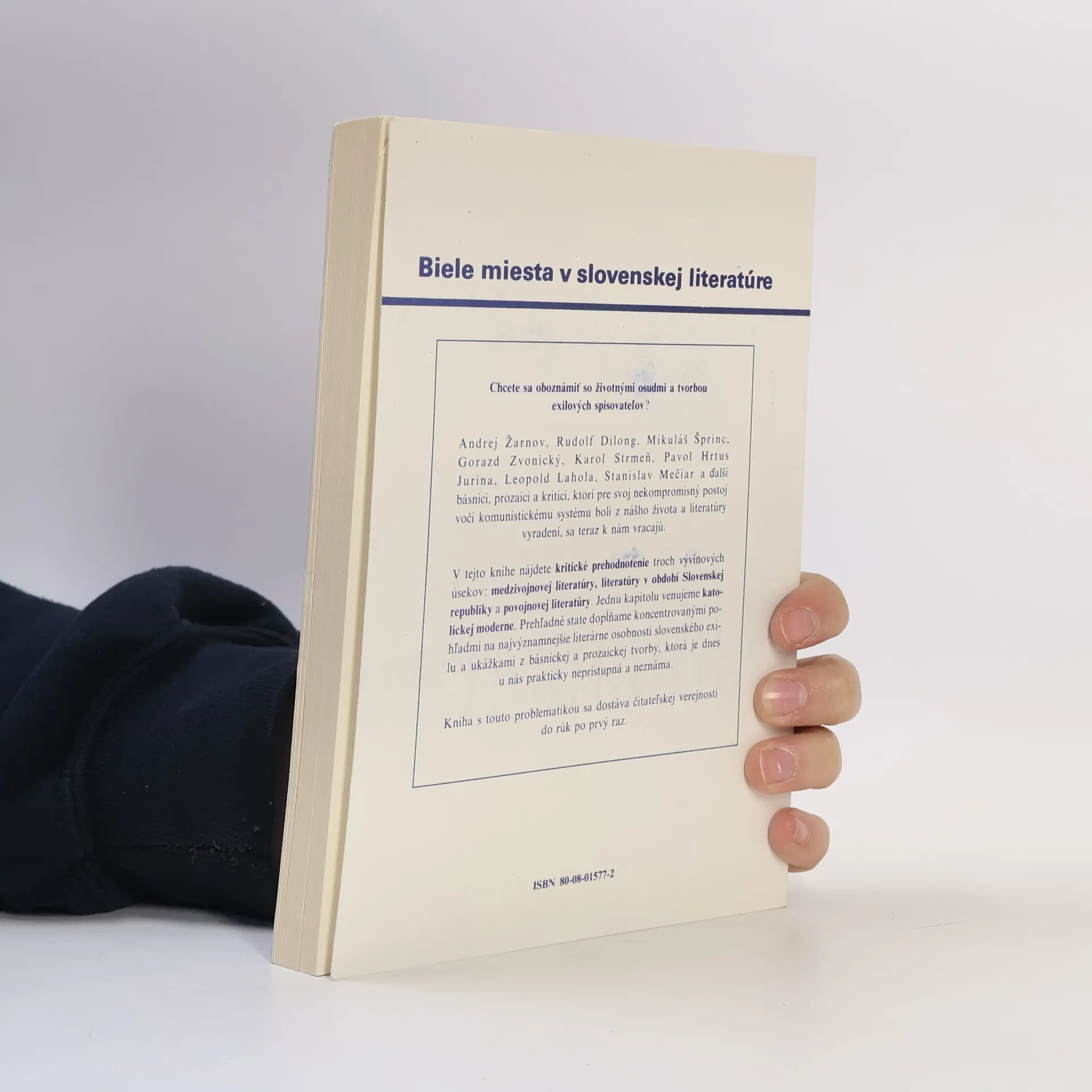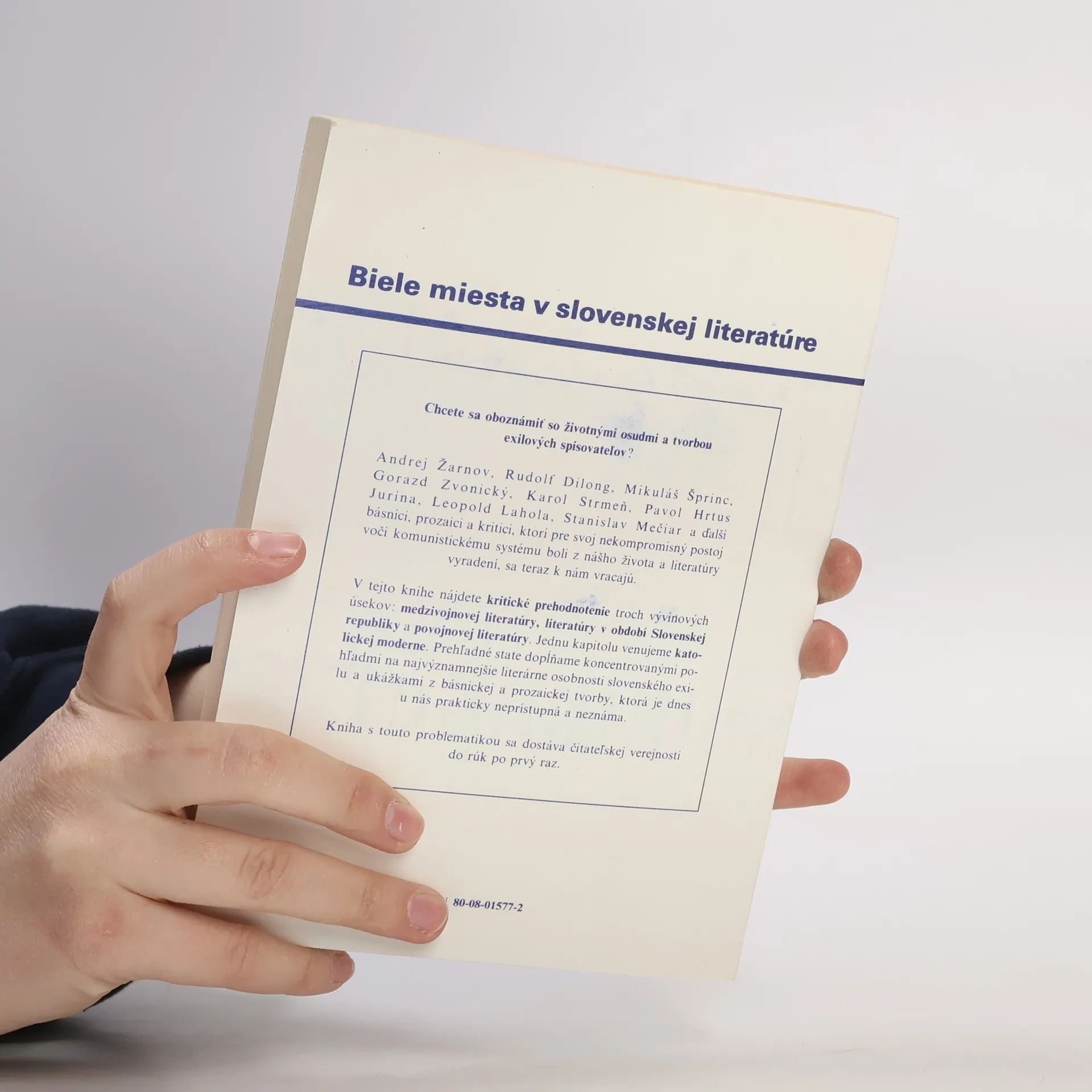 A.Žarnov, R.Dilong, M.Šprinc, G.Zvonický, K.Strmeň, P.Hrtus Jurina, L.Lahola, S.Mečiar... osudy a tvorba exilových autorov. Prehodnotenie 3 vývinových úsekov - medzivojnovej literatúry, literatúry období Slovenskej republiky, povojnovej literatúry. Jedna kapitola je venovaná Katolíckej moderne.