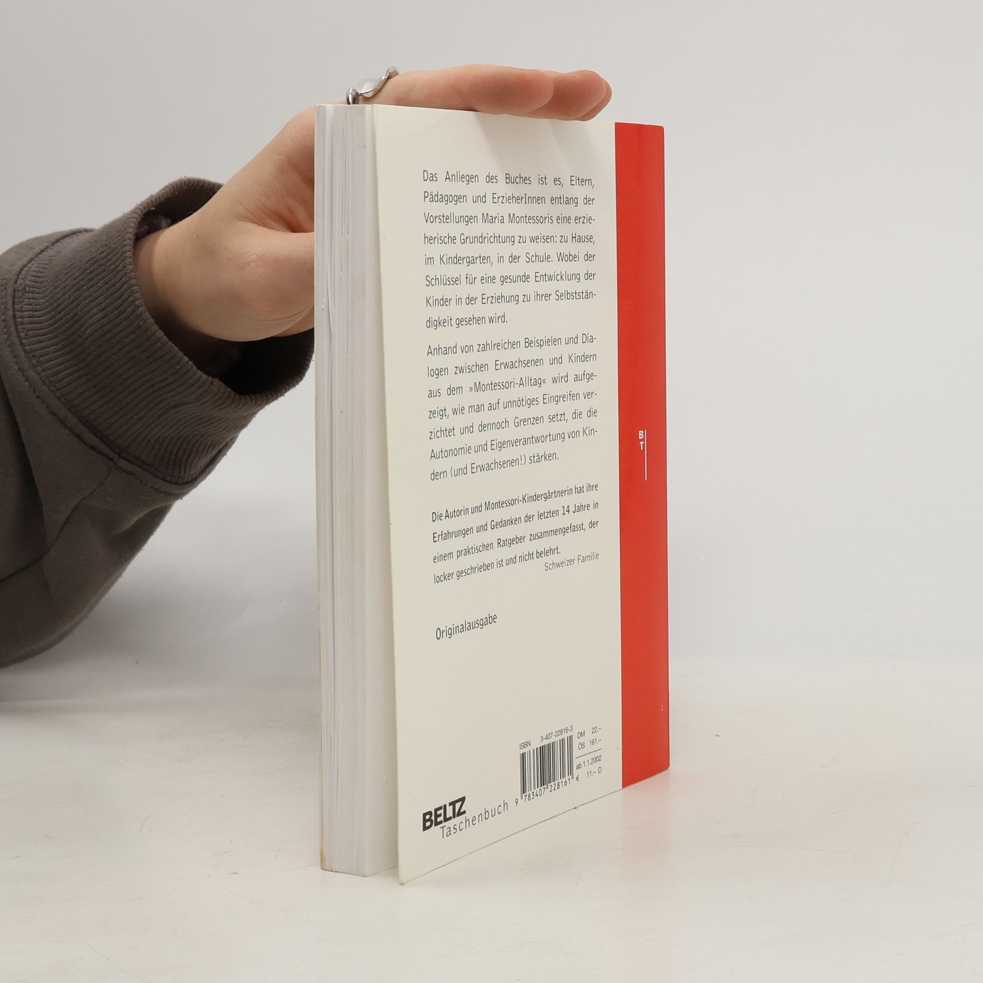 Einem Kind alle Hürden aus dem Weg zu räumen nimmt ihm das eigenständige Lernen aus der Hand, so die Montessori-Pädagogik. Also muss dem Kind Raum gelassen werden für das Selbstlernen und um ein Gefühl für das eigene Können zu entwickeln.Maier-Hauser richtet sich an alle Eltern, die innehalten und prüfen möchten, ob sie in ihrer Aufgabe, ihre Kinder zu begleiten, auf dem richtigen Weg sind. Die meisten Anregungen sind für Kinder bis zum Alter von acht Jahren gedacht, sie lassen sich jedoch weit über dieses Alter hinaus anwenden, vielfach auch im Umgang mit Erwachsenen. Anhand von zahlreichen Beispielen und Dialogen zwischen Eltern und Kindern aus dem »Montessori-Alltag« zeigt die Autorin, wie man auf unnötiges Eingreifen verzichtet und dennoch Grenzen setzt, die die Autonomie und Eigenverantwortung des Kindes stärken.Das einzige »Erziehungsbuch nach Montessori« neben den zahlreichen Originalwerken der italienischen Reformpädagogin.
