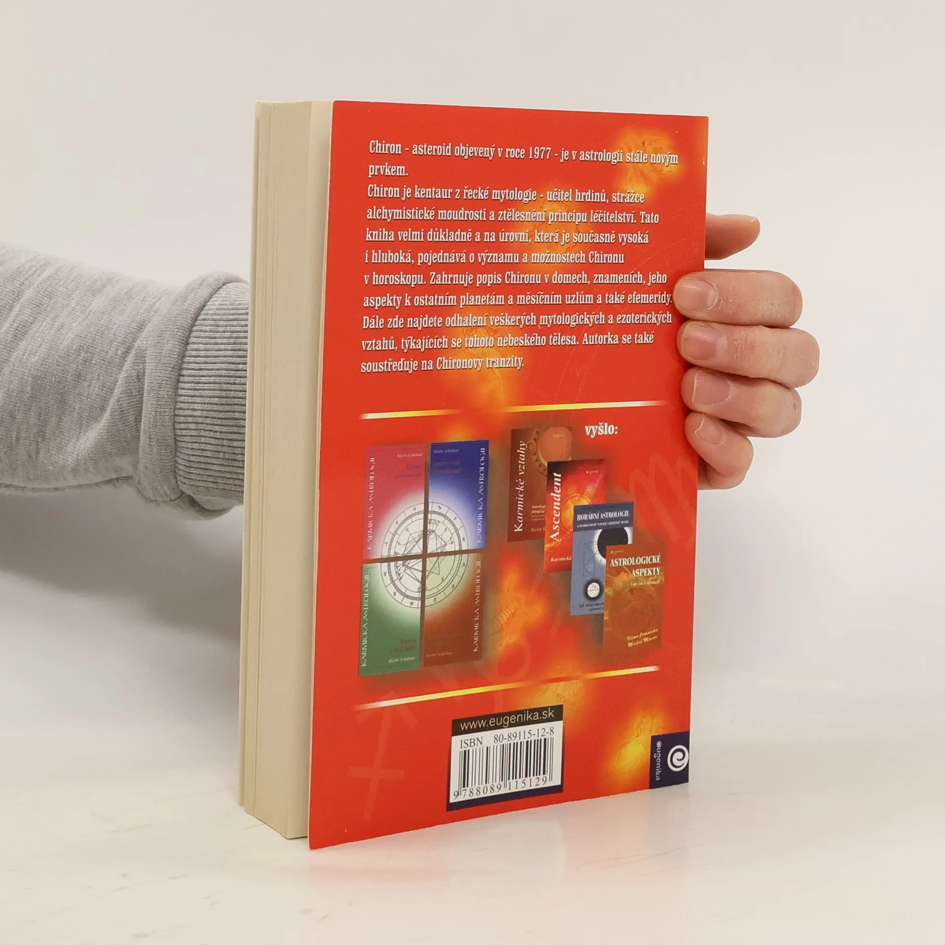 Chiron-asteroid objevený v roce 1977-je v astrologii stále novým prvkem. Chiron je kentaur z řecké mytologie-učitel hrdinů, strážce alchymistické moudrosti a ztělesnění principu léčitelství. Tato kniha velmi důkladně a na úrovni, která je současně vysoká i hluboká, pojednává o významu a možnostech Chironu v horoskopu.Zahrnuje popis Chironu v domech, znameních, jeho aspekty k ostatním planetám a měsíčním uzlům a také efemeridy.
