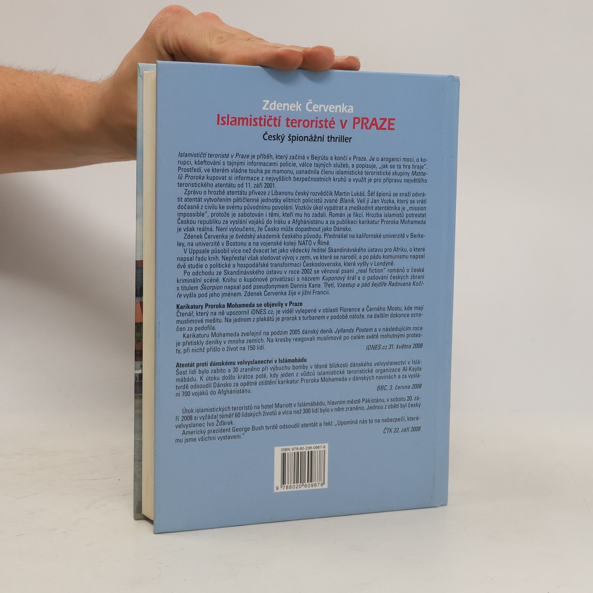 Islamističtí teroristé v Praze je příběh, který začíná v Bejrútu a končí v Praze. Je o aroganci moci, o korupci, kšeftování s tajnými informacemi policie, válce tajných služeb, a popisuje, „jak se ta hra hraje”. Prostředí, ve kterém vládne touha po mamonu, usnadnila členu islamistické teroristické skupiny Mstitelů Proroka kupovat si informace z nejvyšších bezpečnostních kruhů a využít je pro přípravu největšího teroristického atentátu od 11. září 2001. Zprávu o hrozbě atentátu přiveze z Libanonu český rozvědčík Martin Lukáš. Šéf špionů se snaží odvrátit atentát vytvořením pětičlenné jednotky elitních policistů zvané Blaník. Velí jí Jan Vozka, který se vrátí dočasně z civilu ke svému původnímu povolání. Vozkův úkol vypátrat a zneškodnit atentátníka je „mission impossible“, protože je sabotován i těmi, kteří mu ho zadali. Román je fikcí. Hrozba islamistů potrestat Českou republiku za vyslání vojáků do Iráku a Afghánistánu a za publikaci karikatur Proroka Mohameda je však reálná. Není vyloučeno, že Česko může dopadnout jako Dánsko.
