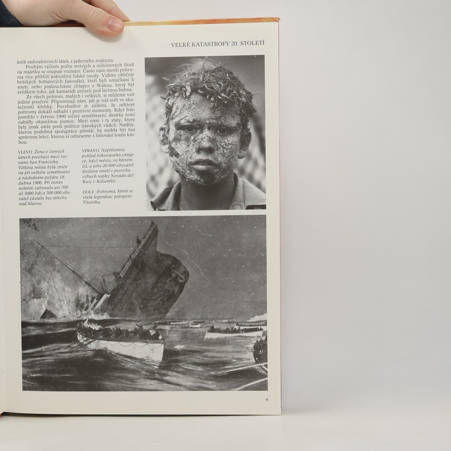 Největší katastrofy 20. století jsou řazeny chronologicky. Doplněno dokumentárními fotografiemi. Katastrofy převážně přírodního původu, které přišly náhle a nečekaně, od r. 1900 do r. 1988, celkem 47 katastrof, včetně Černobylu, s barevnými i černobílými velkými fotografiemi, je zahrnuto i pár nejvýznamnějších katastrof způsobených človkem - Titanik, Hindenburg, Challenger...