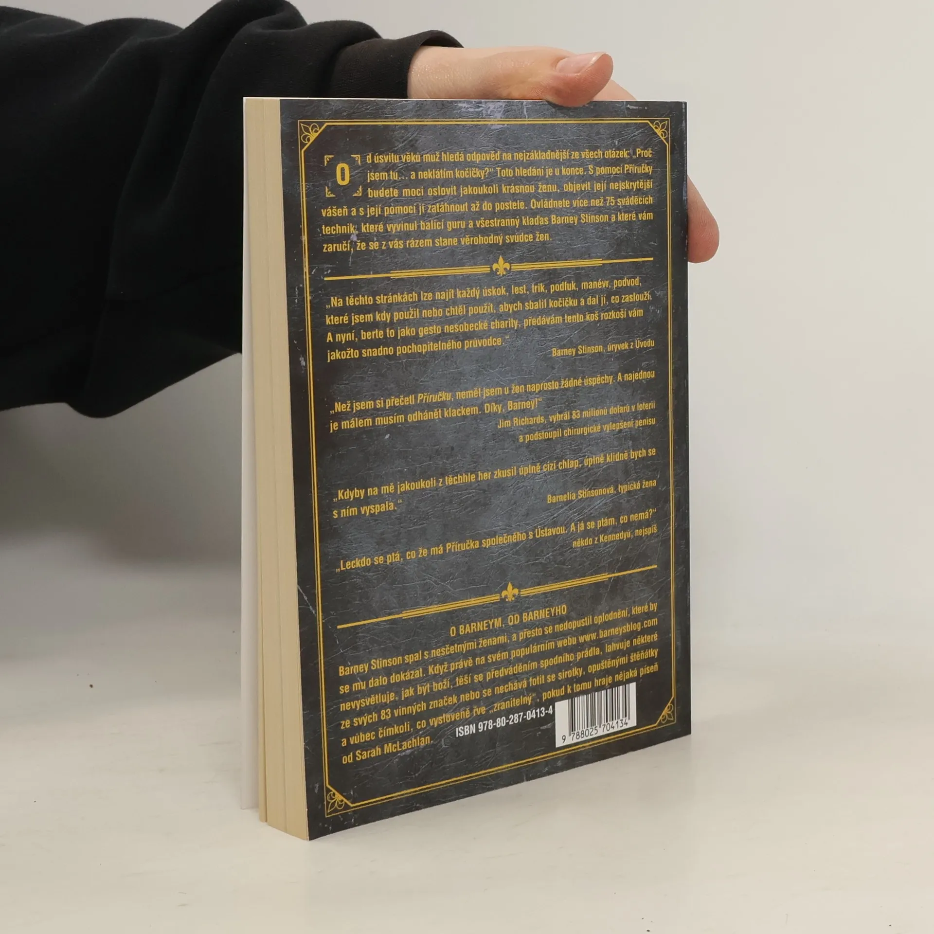 Od úsvitu věků muž hledá odpověď na nejzákladnější ze všech otázek: "Proč jsem tu... a neklátím kočičky?" Toto hledání je u konce. S pomocí Příručky budete moci oslovit jakoukoli krásnou ženu, objevit její nejskrytější vášeň a s její pomocí ji zatáhnout až do postele. Ovládnete více než 75 sváděcích technik, které vyvinul balicí guru a všestranný klaďas Barney Stinson a které vám zaručí, že se z vás rázem stane věrohodný svůdce žen.