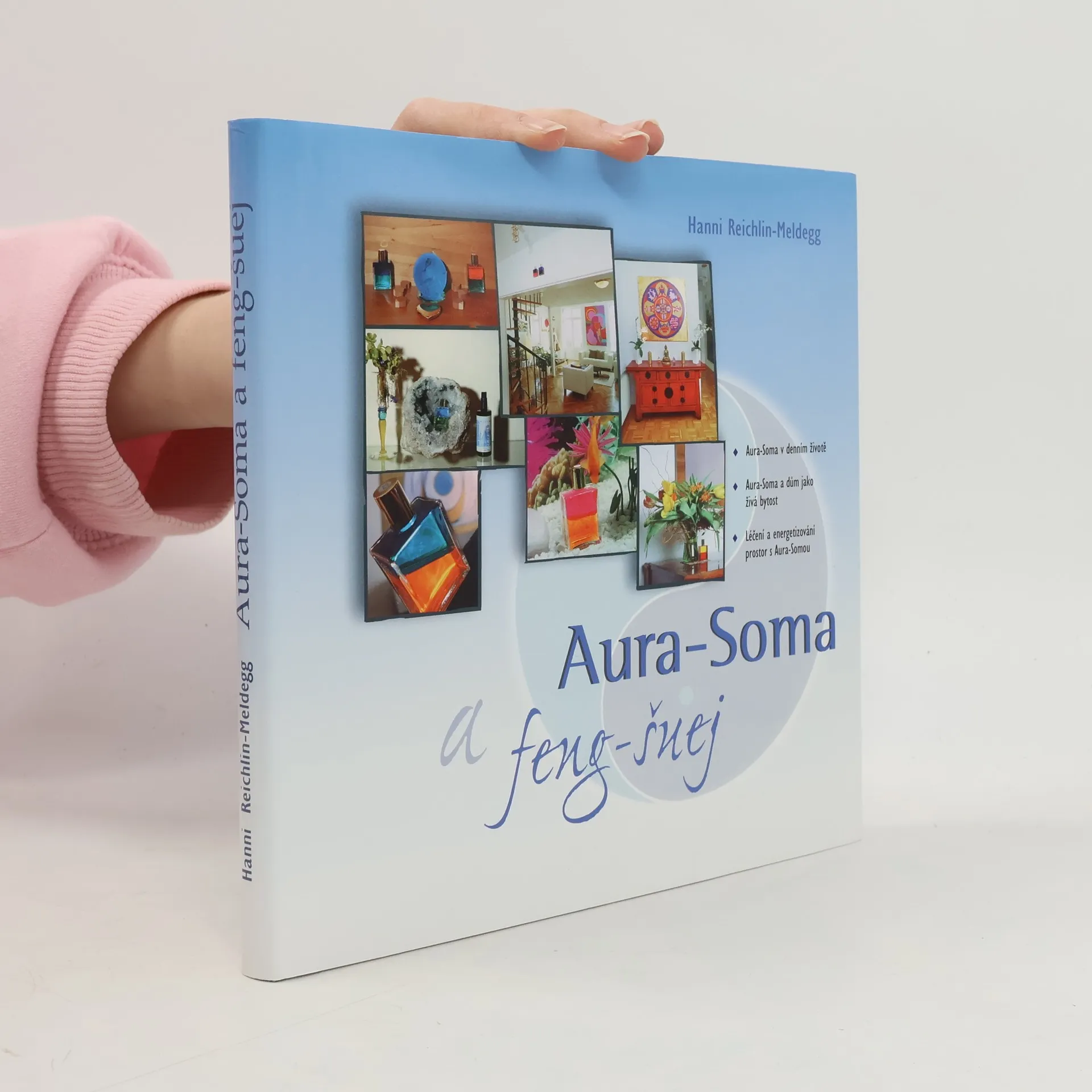 Kniha „Aura-Soma a feng-šuej“ je dílem rakouské autorky, dlouholeté konzultantky a učitelky Aura-Soma, odbornice na feng-šuej, Hanni Reichlin-Meldegg. V této půvabné, celobarevné publikaci se Hanni podařilo propojit dvě cesty ke zkrášlení našeho světa: Aura-Somu a barvy, které harmonizují naše vnitřní psychické prostředí, a umění feng-šuej, které pomáhá obnovit harmonii v našem obytném či pracovním prostoru. Aura-Soma působí zevnitř ven, feng-šuej naopak zvenčí dovnitř a oba systémy jsou tedy svým způsobem přirozenými partnery pro naplněný a šťastný život.