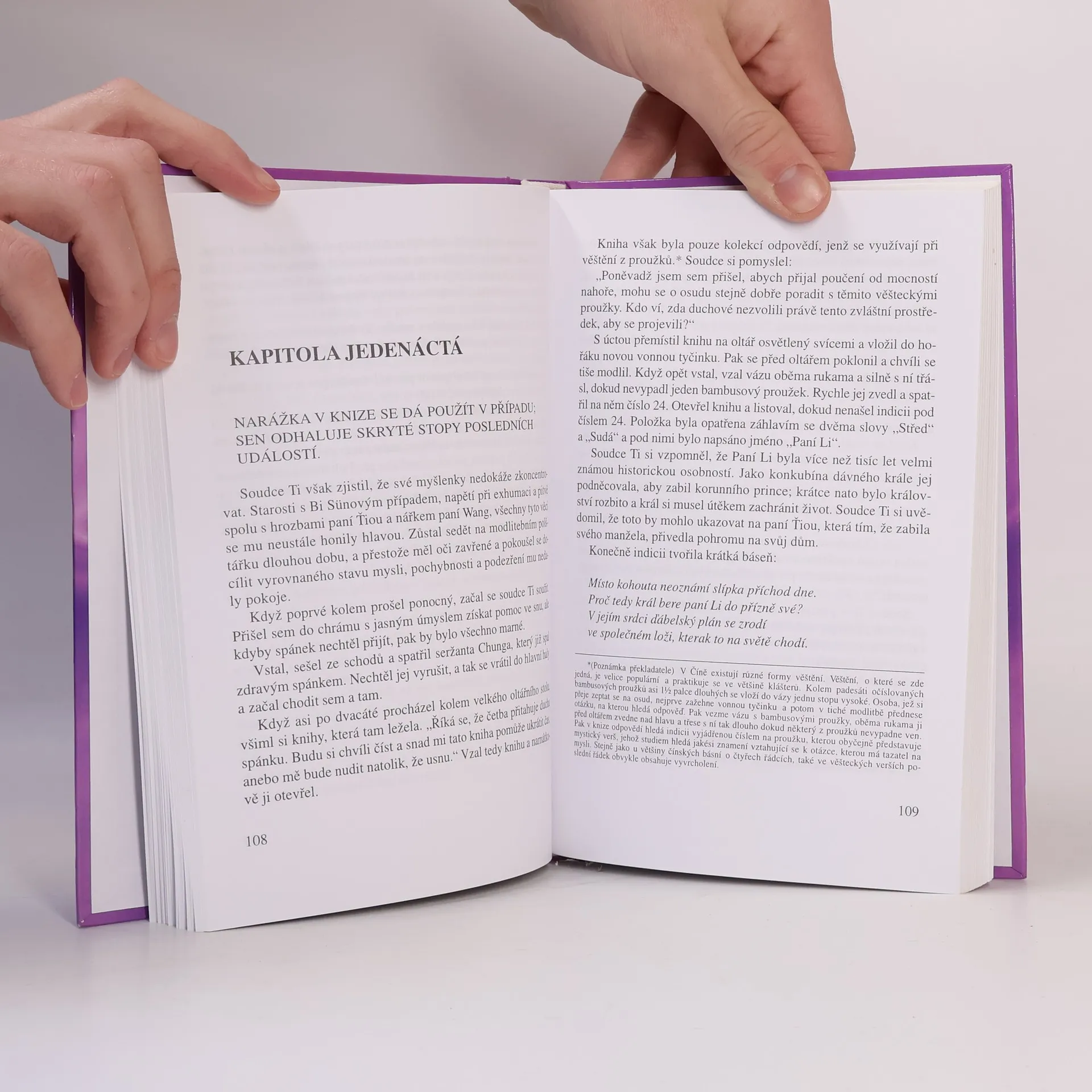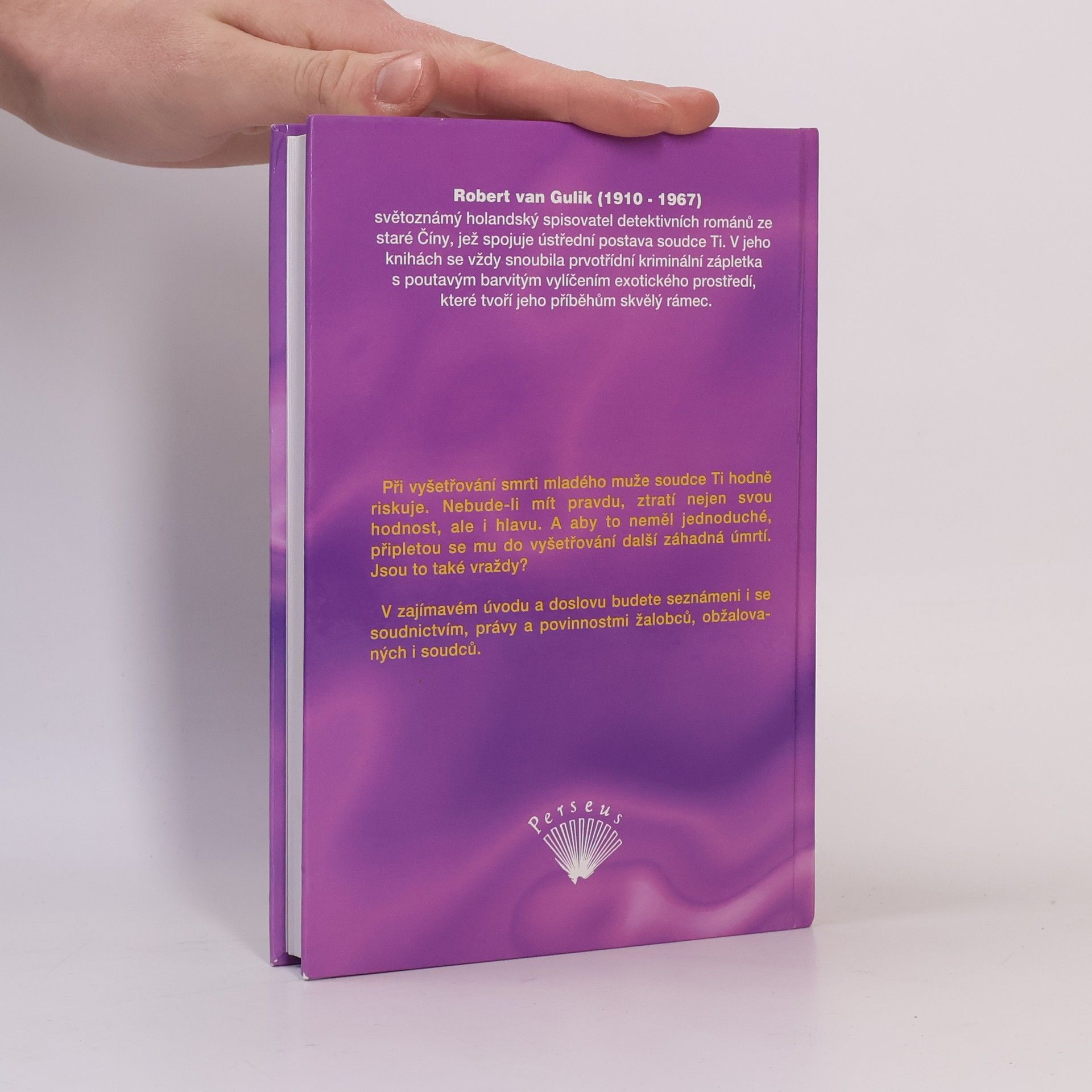 Při vyšetřování smrti mladého muže soudce Ti hodně riskuje. Nebude-li mít pravdu, ztratí nejen svou hodnost, ale i hlavu. A aby to neměl jednoduché, připletou se mu do vyšetřování další záhadná úmrtí. Jsou to také vraždy? Slavné případy soudce Ti je anotovaný překlad knihy napsané v osmnáctém století. Překladatel byl Robert van Gulik a originál byl tištěný v Tokiu. Později van Gulik navázal dalšími, tentokrát již svými příběhy se soudcem Ti.