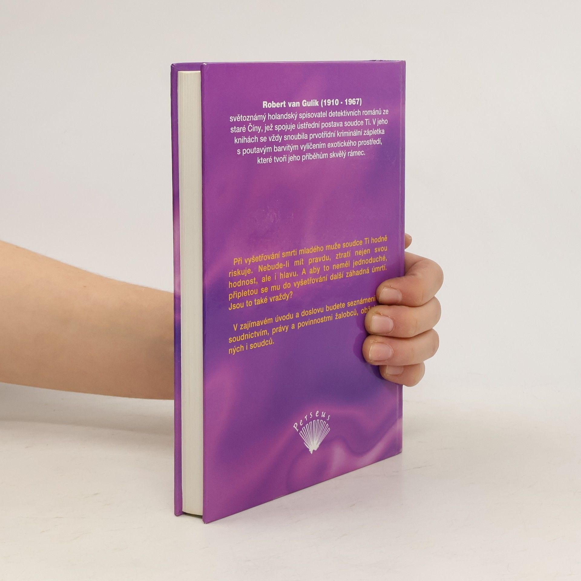 Při vyšetřování smrti mladého muže soudce Ti hodně riskuje. Nebude-li mít pravdu, ztratí nejen svou hodnost, ale i hlavu. A aby to neměl jednoduché, připletou se mu do vyšetřování další záhadná úmrtí. Jsou to také vraždy? Slavné případy soudce Ti je anotovaný překlad knihy napsané v osmnáctém století. Překladatel byl Robert van Gulik a originál byl tištěný v Tokiu. Později van Gulik navázal dalšími, tentokrát již svými příběhy se soudcem Ti.