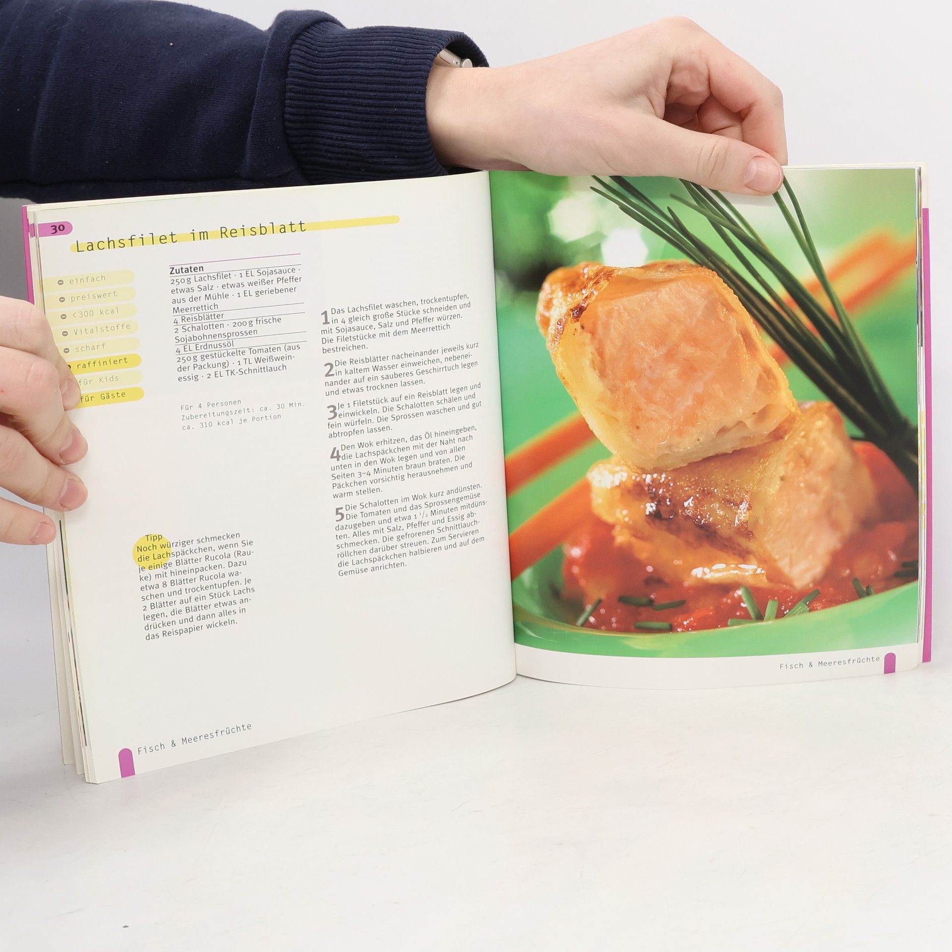 Reich illustrierte Rezepte für schnelle Gerichte mit Fleisch, Fisch, Geflügel, Gemüse, Reis und Nudeln