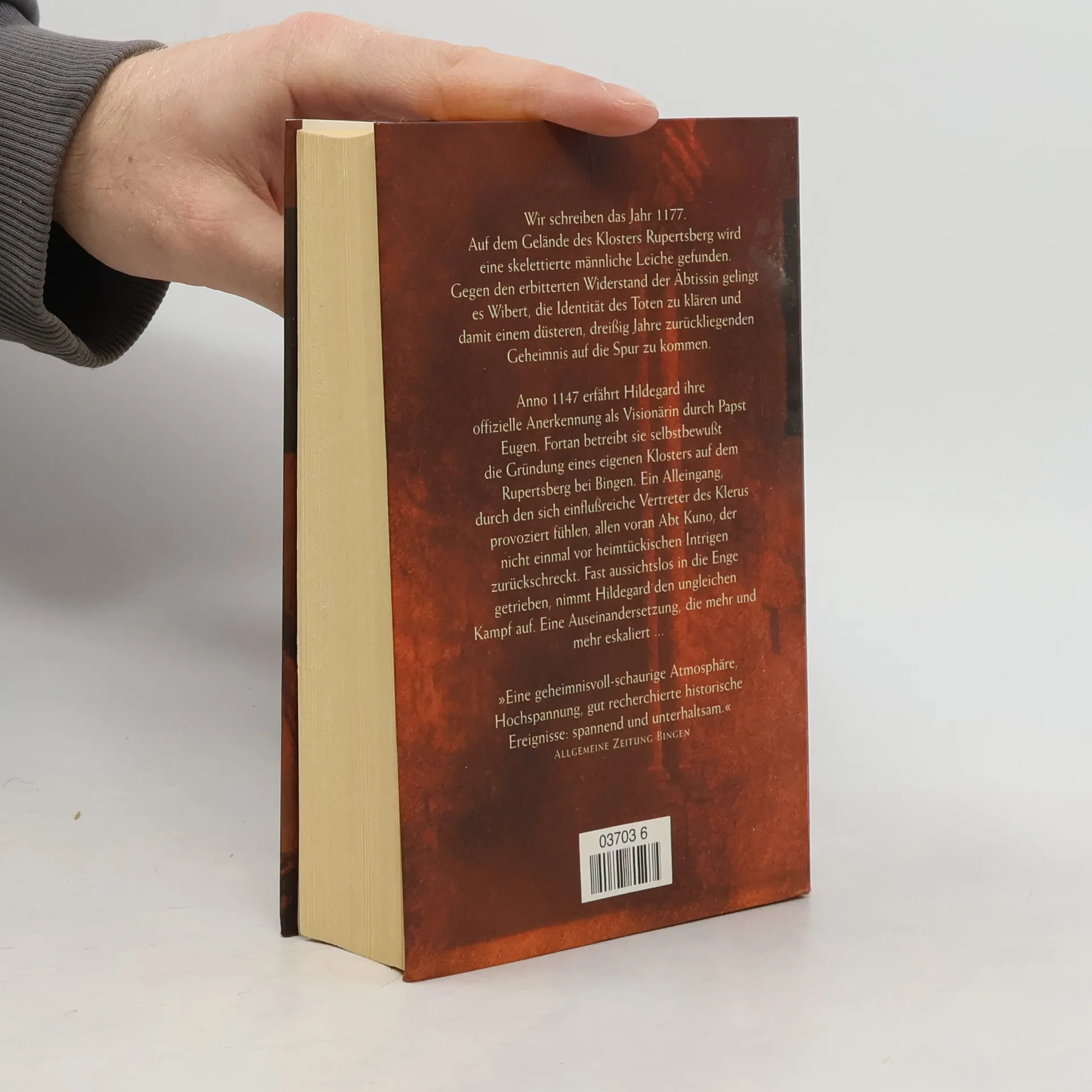 Im Jahr 1177 wird auf dem Gelände des Klosters Rupertsberg eine skelettierte männliche Leiche gefunden. Gegen den erbitterten Widerstand der Äbtissin gelingt es Wibert, die Identität des Toten zu klären und damit einem düsteren, dreißig Jahre zurückliegenden Geheimnis auf die Spur zu kommen. Anno 1147 erfährt Hildegard ihre offizielle Anerkennung als Visionärin durch Papst Eugen. Fortan betreibt sie selbstbewußt ihre Loslösung vom Disibodenberg, um ihr eigenes Kloster auf dem Rupertsberg bei Bingen zu gründen. Eine Abnabelung, durch die sich einflußreiche Vertreter des Klerus provoziert fühlen, allen voran Abt Kuno, der nicht einmal vor den heimtückischsten Intrigen zurückschreckt. Fast aussichtslos in die Enge getrieben, nimmt Hildegard den ungleichen Kampf auf. Eine Auseinandersetzung, die mehr und mehr eskaliert. Als alles vorbei ist, sind selbst die Sieger Verlierer.