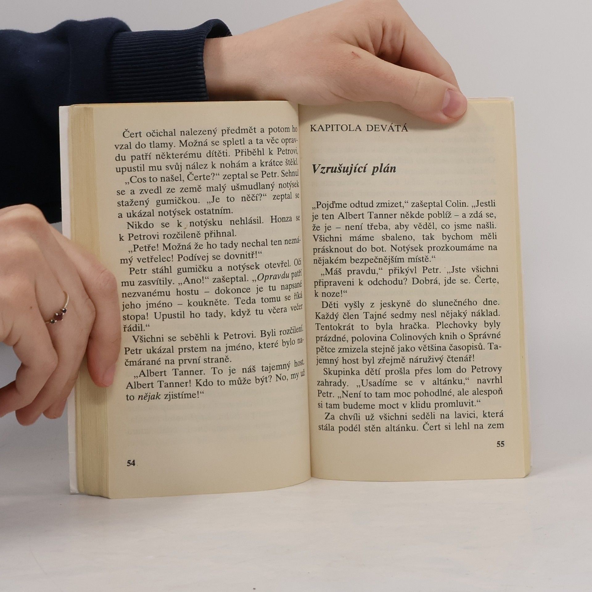 Sedmé dobrodružství party kamarádů, která se tentokrát snaží objasnit záhadu opuštěné jeskyně. Tajná sedma je nucena si najít novou klubovnu. Úkryt v jeskyni se zpočátku jeví jako ideální. Brzy se však začnou ztrácet přinesené věci (mizí knížky, časopisy i jídlo). I přes nastraženou past se dětem nedaří pachatele odhalit. Kudy se do jeskyně dostává? Kdo je oním tajemným návštěvníkem? Je to opravdu Honzova sestra Zuzka nebo někdo úplně jiný?