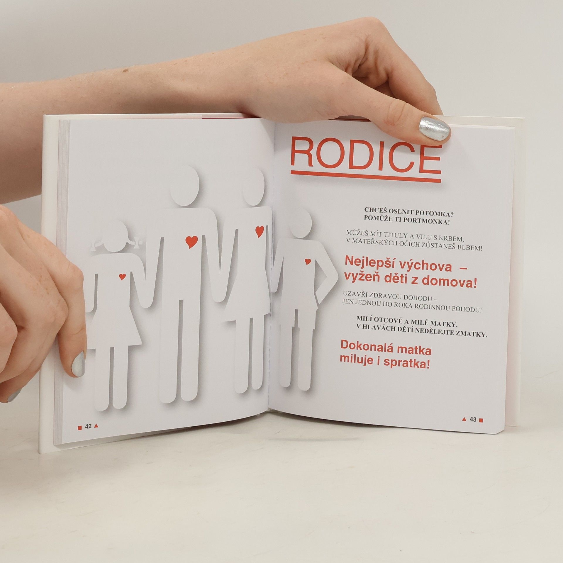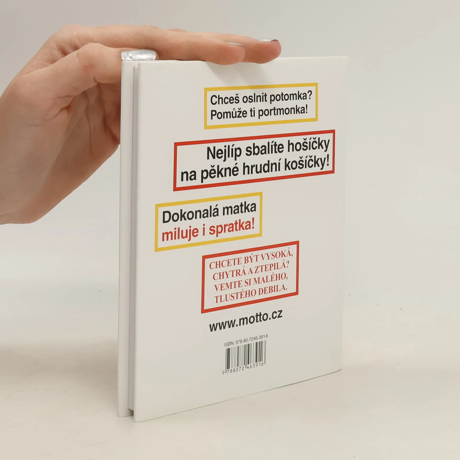 Chceš oslnit potomka? Pomůže ti portmonka! Nejlíp sbalíte hošíčky na pěkné hrudní košíčky! Dokonalá matka miluje i spratka! Chcete být vysoká, chytrá a ztepilá? Vemte si malého, tlustého debila. Váz., 112 stran