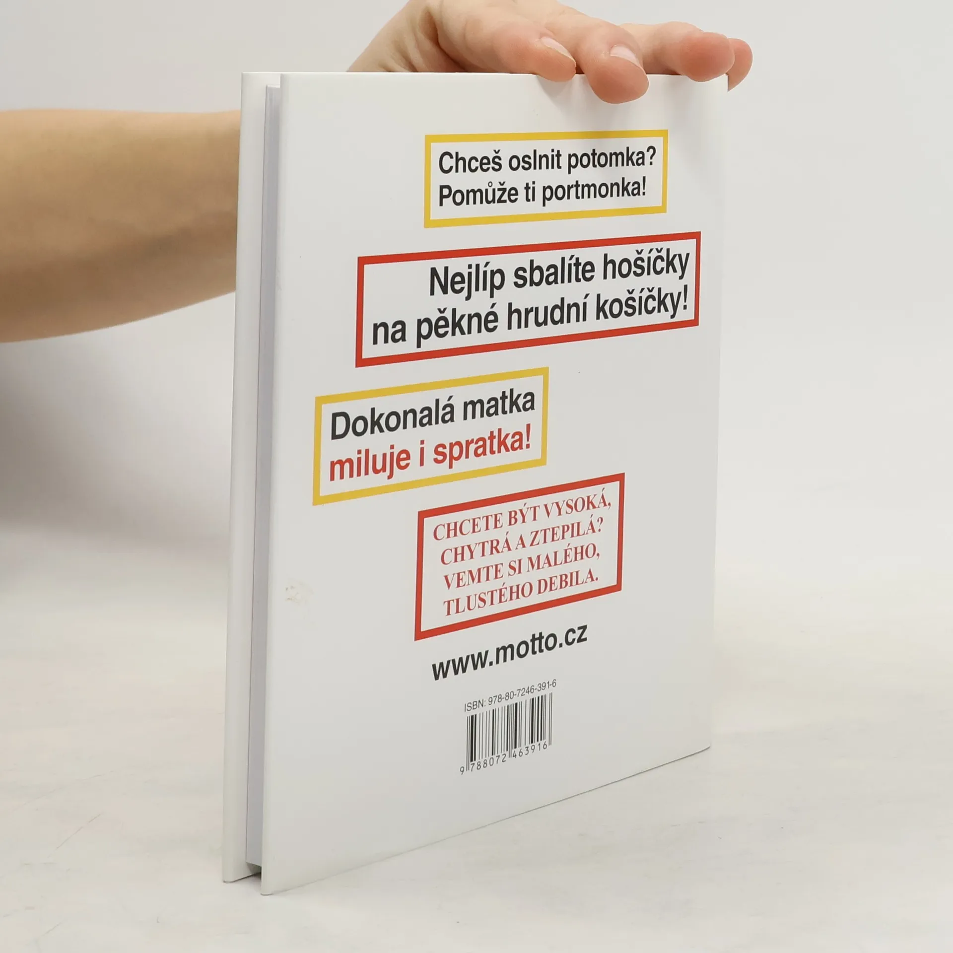 Chceš oslnit potomka? Pomůže ti portmonka! Nejlíp sbalíte hošíčky na pěkné hrudní košíčky! Dokonalá matka miluje i spratka! Chcete být vysoká, chytrá a ztepilá? Vemte si malého, tlustého debila. Váz., 112 stran