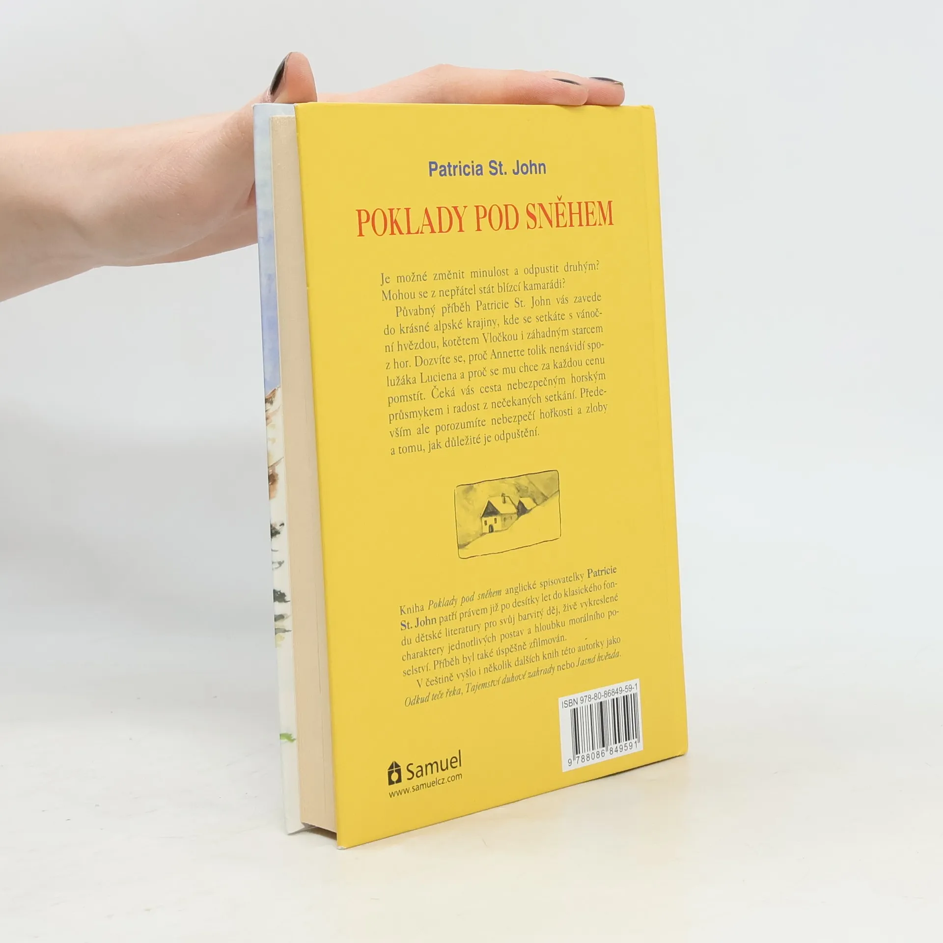 Co myslíte, dá se změnit minulost? Je možné odpustit druhým lidem? Mohou se z nepřátel stát blízcí přátelé? V tomto příběhu se vypravíte do krásné alpské krajiny, kde se setkáte s vánoční hvězdou, kotětem Vločkou i záhadným starcem z hor. Dozvíte se, proč Annette tolik nenávidí Luciena a proč se mu chce za každou cenu pomstít. Spolu s Lucienem zase projedete nebezpečným průsmykem. Především ale porozumíte nebezpečí hořkosti a zloby a tomu, jak důležité je odpuštění. Knihy Patricie St. John patří právem již po desítky let do klasického fondu dětské literatury. Vyznačují se především vykreslením uvažování jednotlivých postav a hloubkou svého morálního poselství. Část svého dětství prožila autorka ve Švýcarských Alpách. Od roku 1945 pracovala v misijní nemocnici v Maroku. V češtině mimojiné vyšly její knihy Odkud teče řeka, Tajemství jedné zahrady, Jasná hvězda, Tajemné houštiny a další. Poklady pod sněhem byly také úspěšně zfilmovány. Třetí, revidované vydání. Překlad vychází z revidovaného anglického vydání z roku 1999. Ilustroval ak. mal. Jiří Kučera.