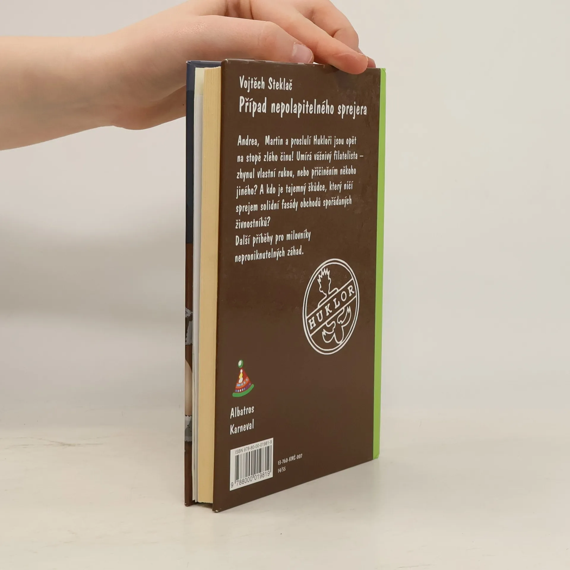 Další dva případy pro detektivní kancelář Huklor: Smrt vášnivého filatelisty a neznámý sprejer v detektivních příbězích pro děti kolem 10 let. Starší bratr Pana Mautnera spáchal sebevraždu a on neví, proč. A tak se detektivní kancelář Huklor (Martin, Andrea, Kvído a Hugo) ujímá případu. Druhý případ se týká neznámého sprejera, který ničí fasády domů v okolí. Tady spíš než velké dobrodružstí čeká Martina a Andreu dlouhé sledování možných pachatelů. Druhý příběh z řady Dvojčata v akci. Volně navazuje na knihu Poklad hraběte Domanína.
