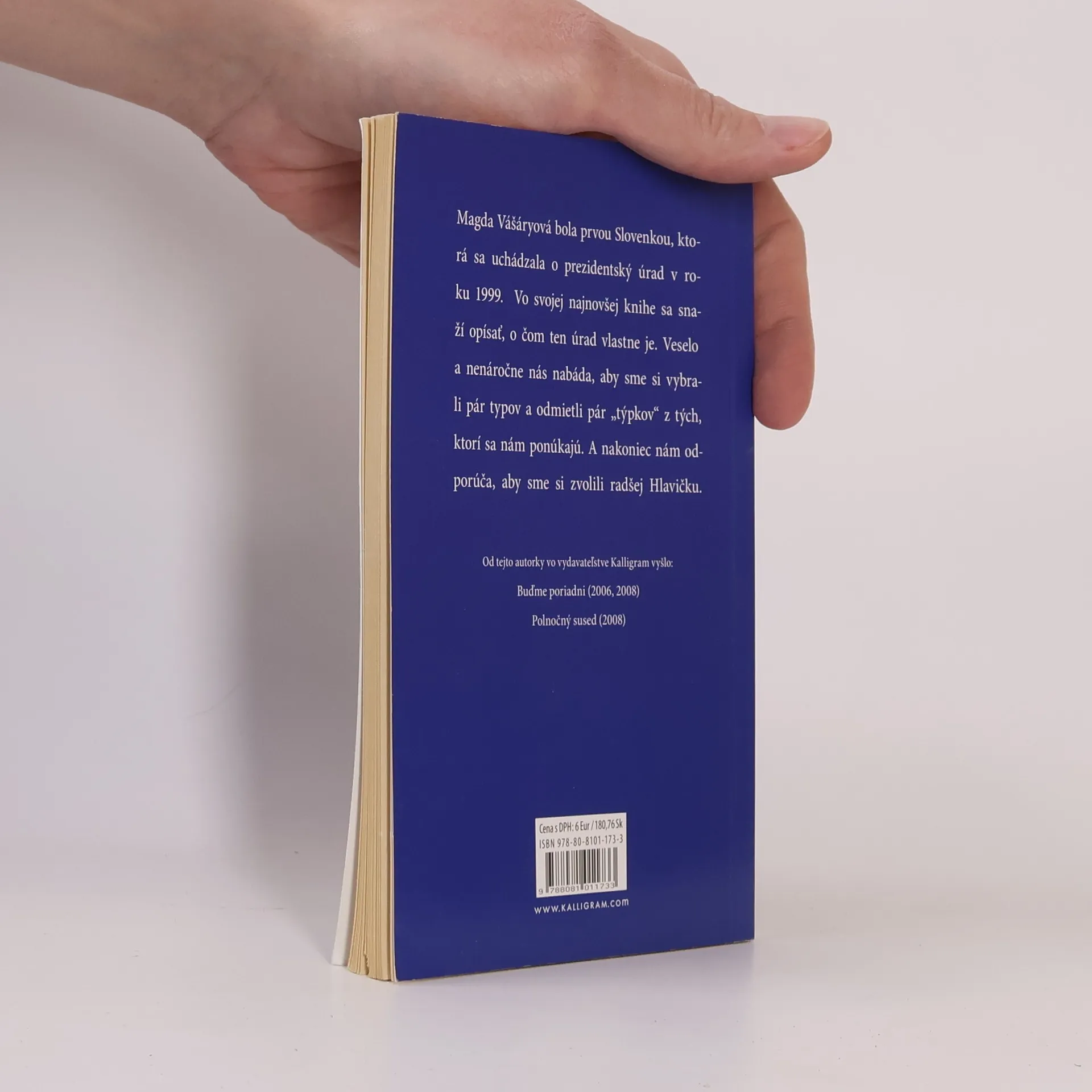 Načo potrebujeme prezidenta, keď sme parlamentnou republikou? Čo prezident robí? Čo by malo byť jeho najdôležitejšou vlastnosťou? Koho teda máme voliť? A hlavne, načo to všetko? Magda Vášáryová si vo svojej knihe kladie tieto a ďalšie otázky súvisiace s postom hlavy štátu. Ako prvá Slovenka sa v roku 1999 sama uchádzala o prezidentský úrad a v tejto knihe sa snaží nenáročnou a zábavnou formou opísať, o čom ten úrad vlastne je. Zároveň nám predstaví pár typov a "týpkov" a odporúča, aby sme si zvolili radšej "Hlavičku." Texty autorky dopĺňajú vtipné ilustrácie Kaza Kanalu.