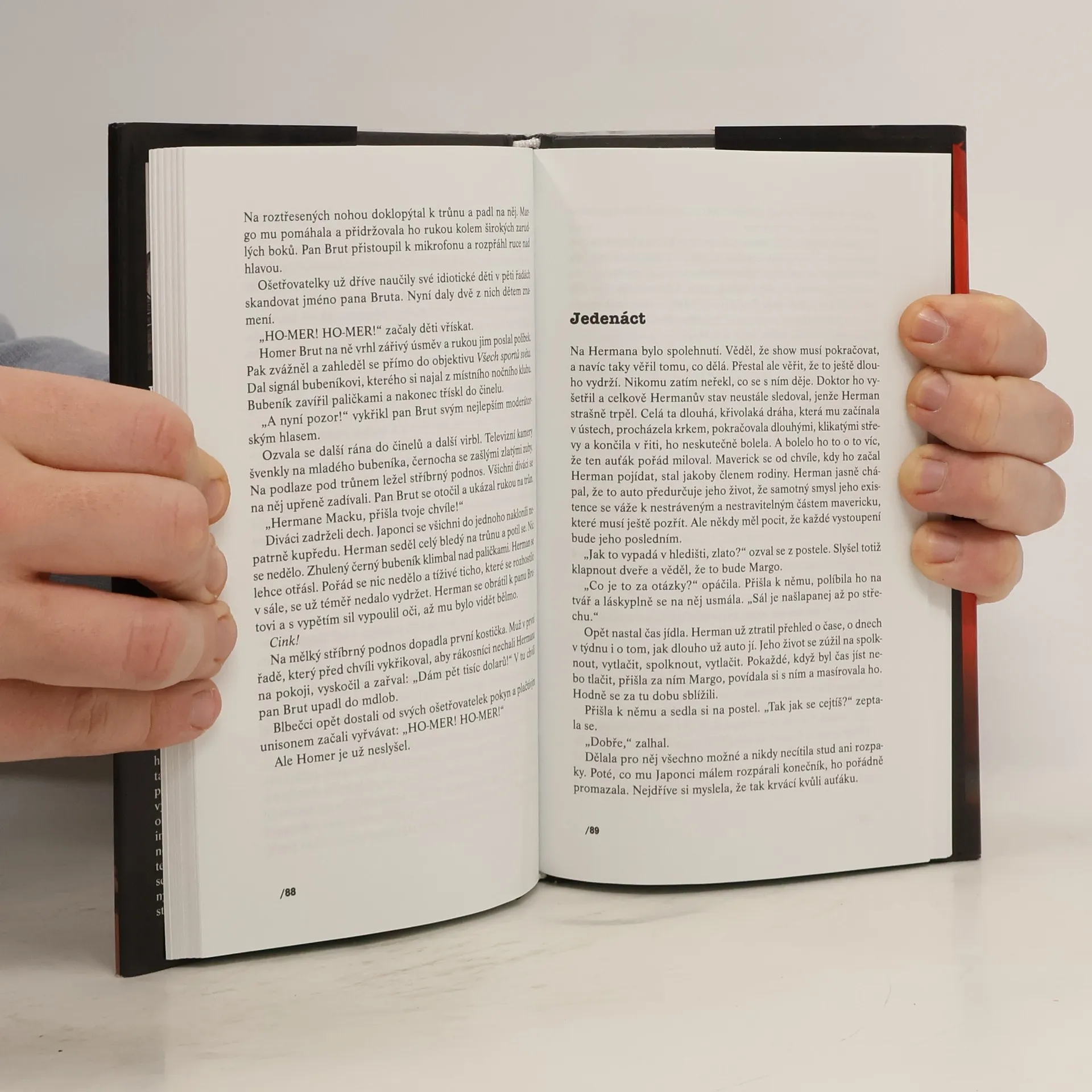 Bizarní novela o muži, který se rozhodl veřejně sníst auto. Herman Mack vyrostl v rodině majitele obřího vrakoviště, jeho život vždy naplňovala a podmiňovala auta. Jinak na tom nejsou ani jeho blízcí a známí - každý, koho zná, je tak či onak závislý na automobilech. Svou lásku i nenávist k tomuto dopravnímu prostředku a symbolu štěstí, majetku a kdovíčeho ještě se rozhodne vyjádřit pomocí groteskní show - veřejně postupně pozře celý automobil, po malých kouscích a pod přísným lékařským dohledem. Oznámení tohoto svérázného záměru vzbudí obrovský zájem i odpor, celý podnik slibuje být velice výnosným představením a na realizaci je zainteresováno čím dál víc osob. A tak se z gesta, které snad mělo být pokusem o nejintimnější kontakt a zároveň jakýmsi živočišným vítězstvím nad všemocným strojem, stává další způsob, jímž si onen stroj podmaní lidi kolem sebe. Hermanovo odhodlání se vytrácí a to nemůže dobře dopadnout..