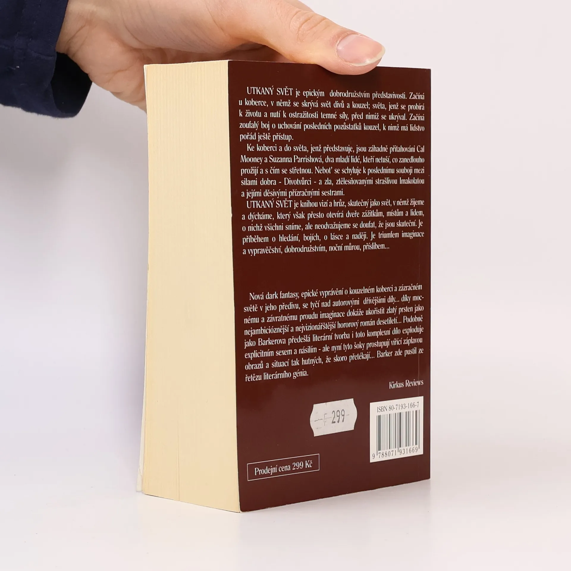 Utkaný svět je epickým dobrodružstvím představivosti. Začíná u koberce, v němž se skrývá svět divů a kouzel; světa, jenž se probírá k životu a nutí k ostražitosti temné síly, před nimiž se ukrýval. Začíná zoufalý boj o uchování pozůstatků kouzel, k nimž má lidstvo pořád ještě přístup. Ke koberci a do světa, jenž představuje, jsou záhadně přitahováni Cal Mooney a Suzanna Parrishová, dva mladí lidé, kteří netuší, co zanedlouho prožijí a s čím se střetnou. Neboť se schyluje k poslednímu souboji mezi silami dobra - Divotvůrci - a zla, ztělesňovanými strašlivou Imakolatou a jejími děsivými přízračnými sestrami. Utkaný svět je knihou vizí a hrůz, skutečný jako svět, v němž žijeme a dýcháme, který však přesto otevírá dveře zážitkům, místům a lidem, o nichž všichni sníme, ale neodvažujeme se doufat, že jsou skuteční. Je příběhem o hledání, bojích, o lásce a naději. Je triumfem imaginace a vypravěčství, dobrodružstvím, noční můrou, příslibem...