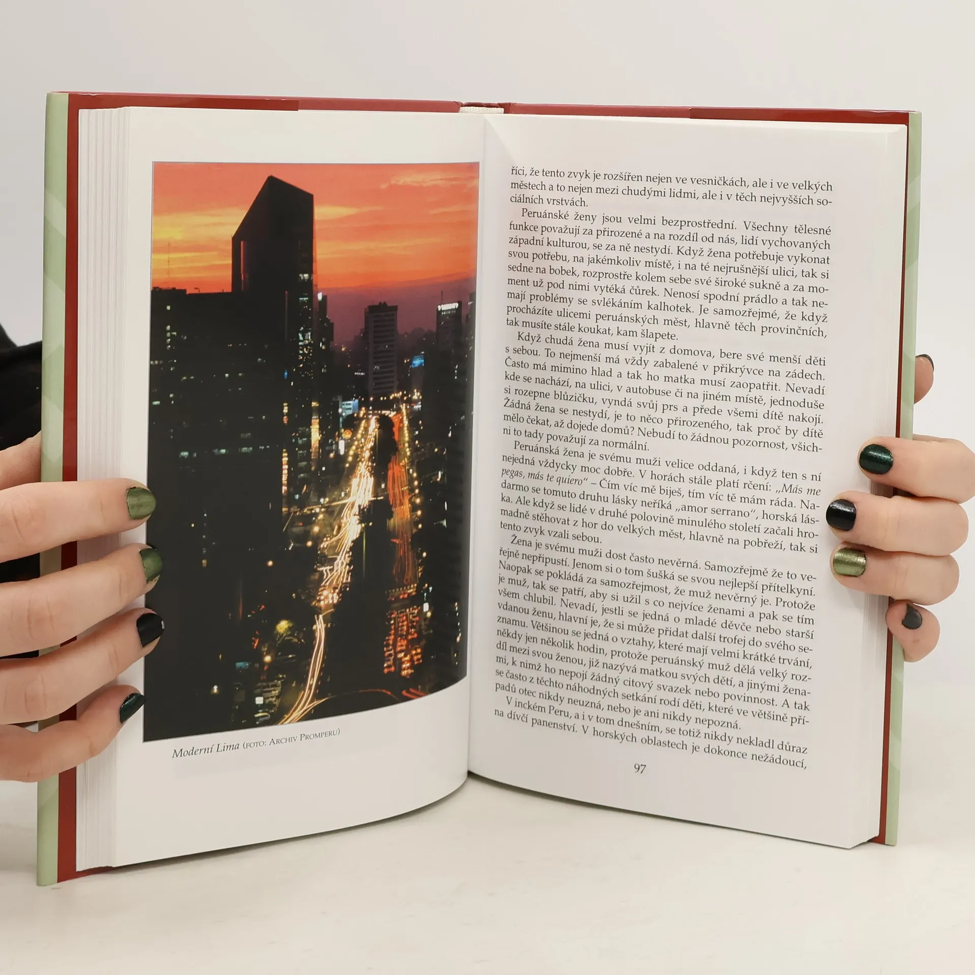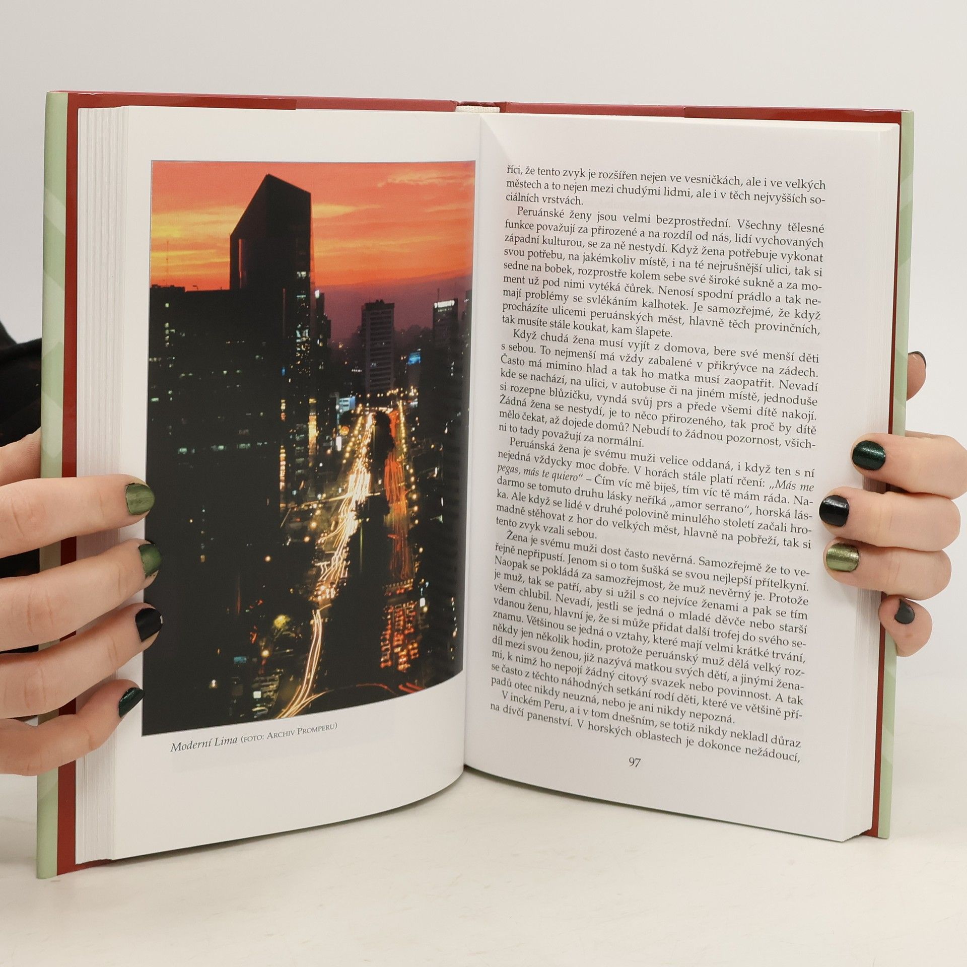 Autorka - rodačka z Čech - strávila v Peru dvacet osm let, zabývala se zejména peruánskou archeologií a etnografií And. O své bohaté znalosti peruánské historie i současnosti se dělí se čtenáři v zajímavě napsané knížce. Líčí nesmírně bohatou přírodu i podnebí Peru - od pouště při pobřeží, přes vrcholky And až po pralesy v povodí Amazonky. Peru je i etnicky rozmanitá země a ne nadarmo byla nazvána zemí sta jazyků. Autorka věnuje dostatek prostoru i postavení žen v peruánské společnosti - v minulosti i dnes. Představuje zajímavou peruánskou kuchyni, náboženské svátky, v nichž se mísí převládající křesťanství s tradicemi předkolumbovských civilizací. Další kapitola se zabývá tajemnými pouštními kresbami gigantických rozměrů poblíž městečka Nazca, které vzbuzují pozornost archeologů již po více než jedno století. Kniha potěší všechny, kteří chtějí hlouběji proniknout do kultury a historie této jihoamerické země.